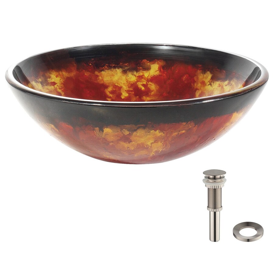 The Onyx glass sink combines beautiful shades of red with shades of yellow and has a unique black rim