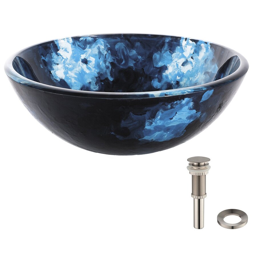Glass sink is constructed from solid tempered glass and features smooth interior with a vibrant color pattern