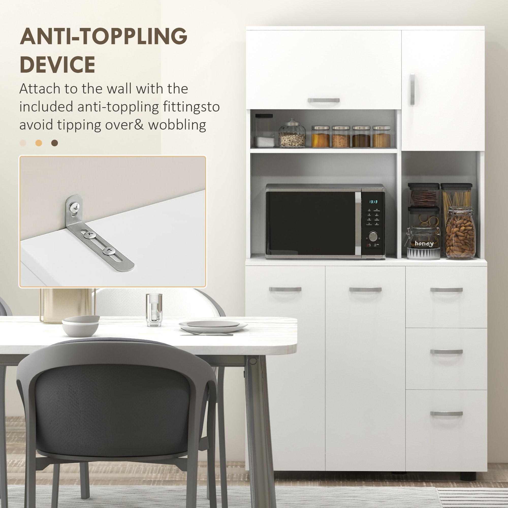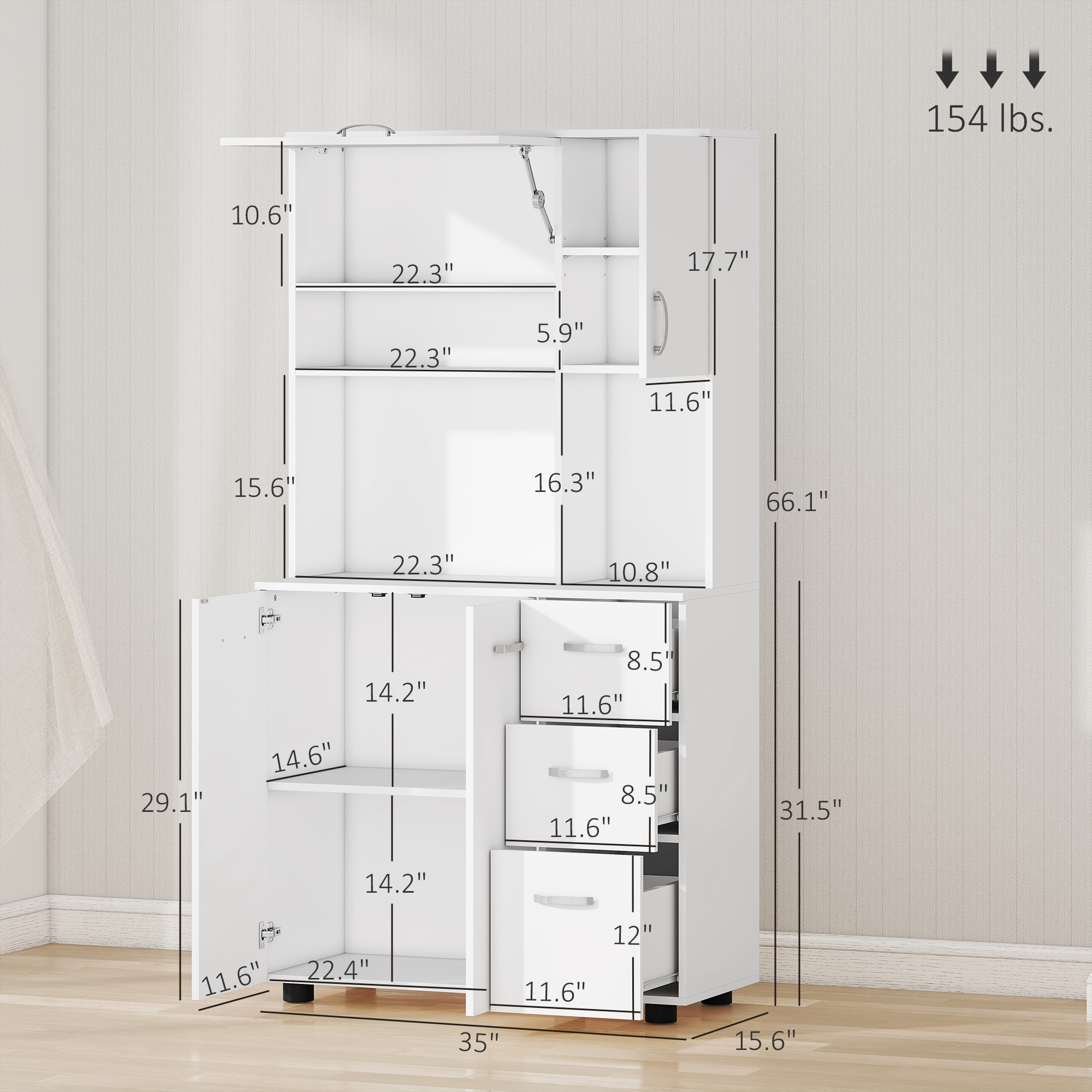 HomCom 66In Buffet with Hutch Freestanding Kitchen Pantry with 2 Large Cabinets 1 Pull Up Cabinet 3 Drawers and Wide Countertop White