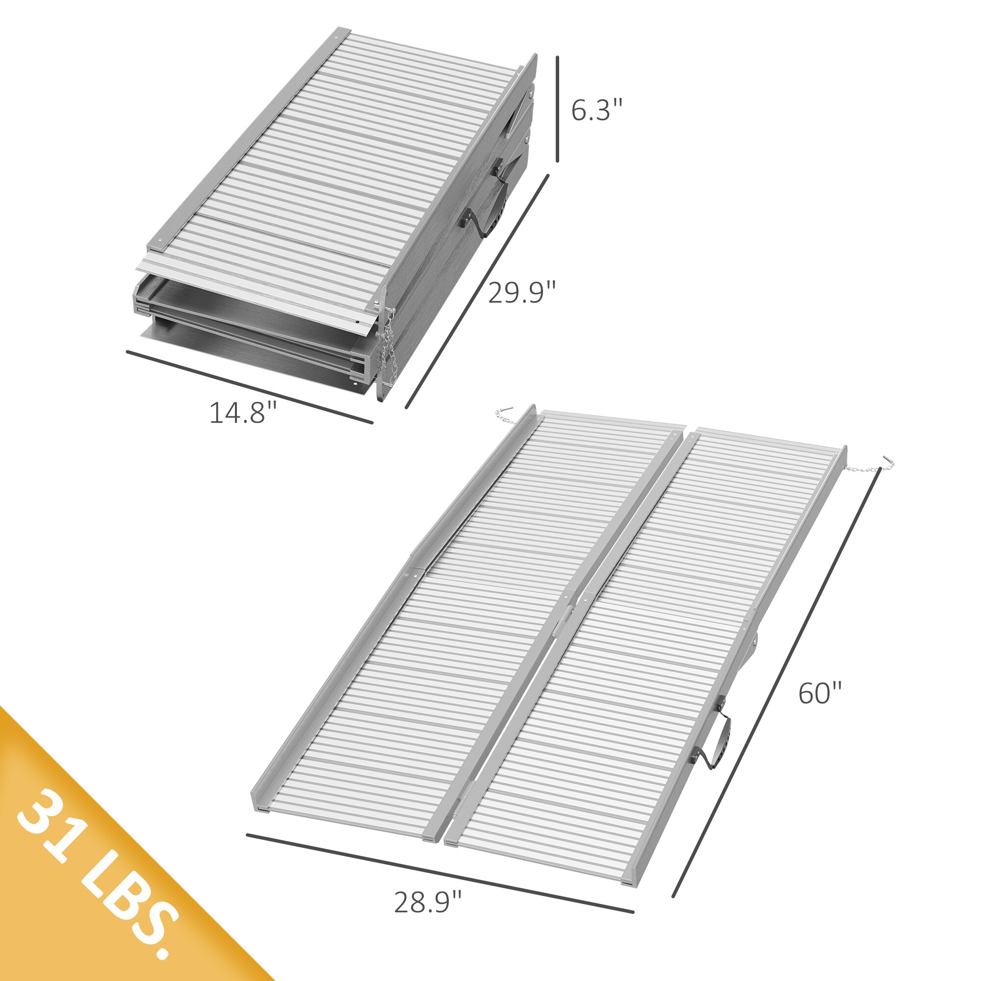 HomCom Wheelchair Ramp 5FT Foldable Aluminum Threshold Ramp with Non-Slip Surface and Handle 600lbs Weight Capacity Suitcase Handicap Ramp for Home Doorways Curbs Steps