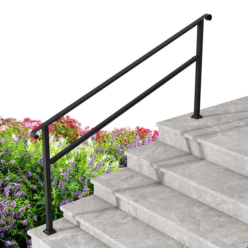 Homsee Iron 6 Step Stair Handrail with Adjustable Angle Outdoor Indoor Safety Railing Kit 82.1''L x 3.3''W x 37''H Black