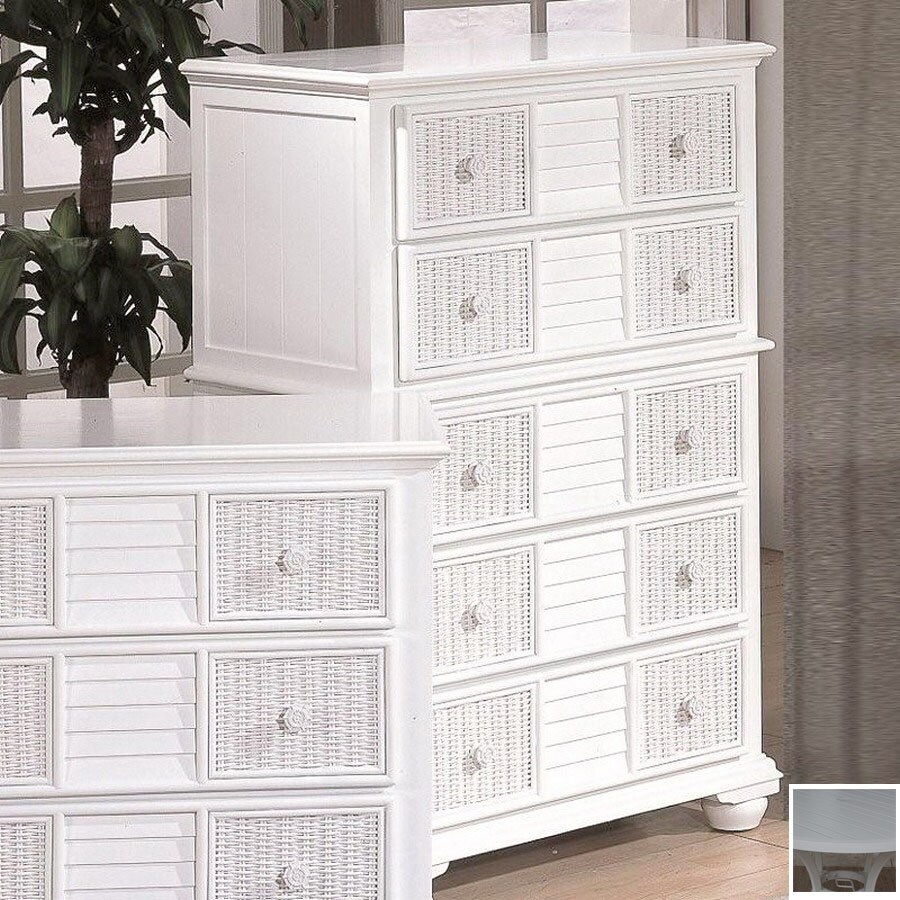 Hospitality Rattan Ships Wheel White 5-Drawer Dresser