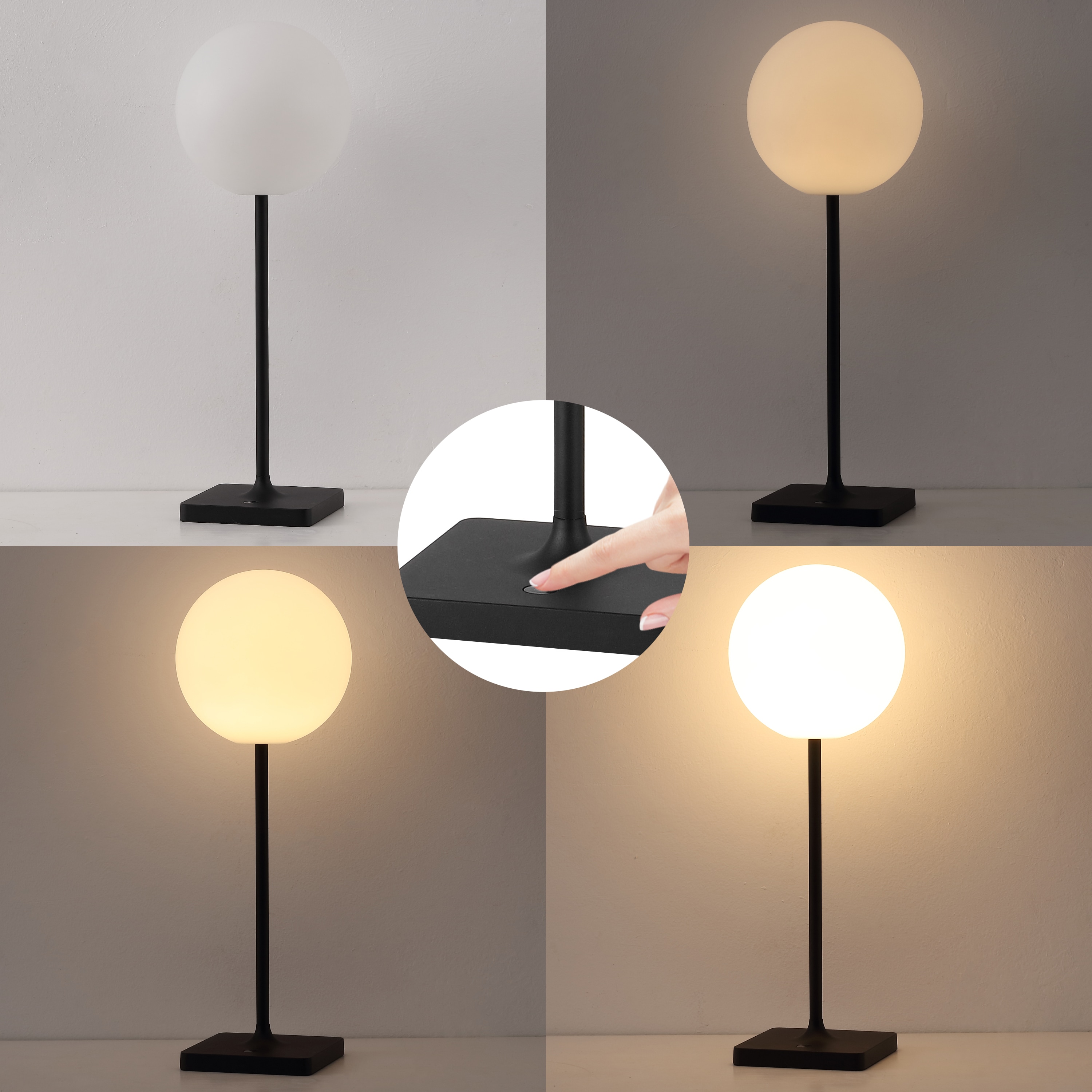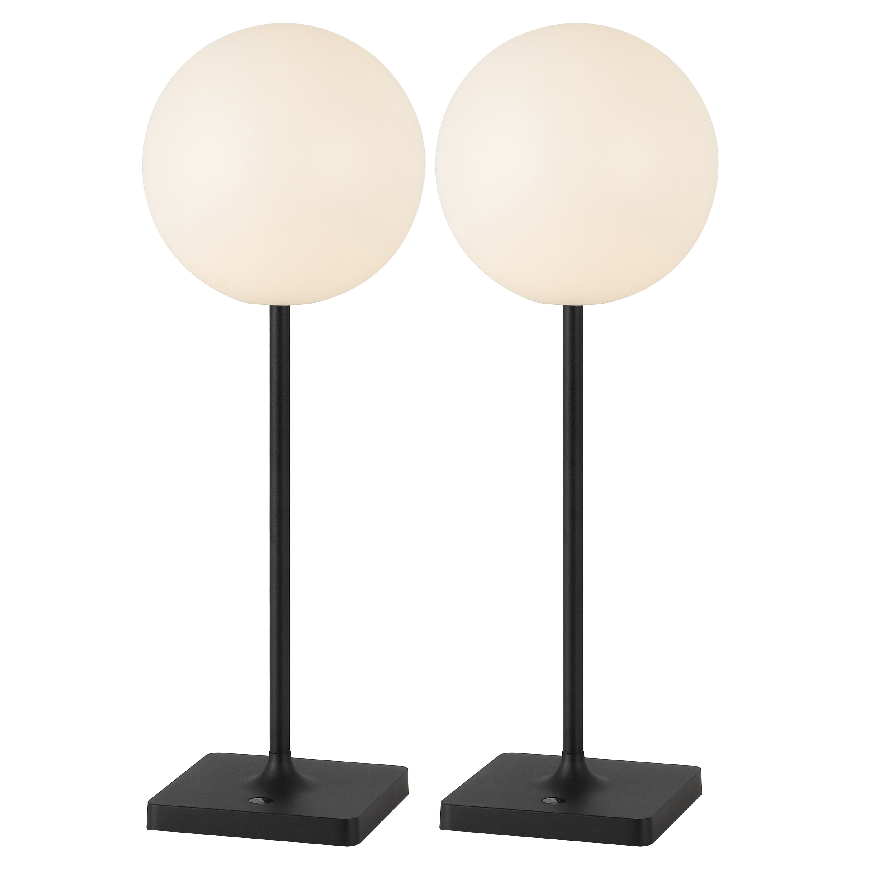 This pair of rechargeable accent lamps adds modern lighting to any porch or patio without an outlet. The minimalist base is topped by a globe shade with integrated LED bulbs for plenty of light, and has a touch-sensor dimmer switch. These battery-powered lamps are a chic addition to any home, indoors or outdoors.