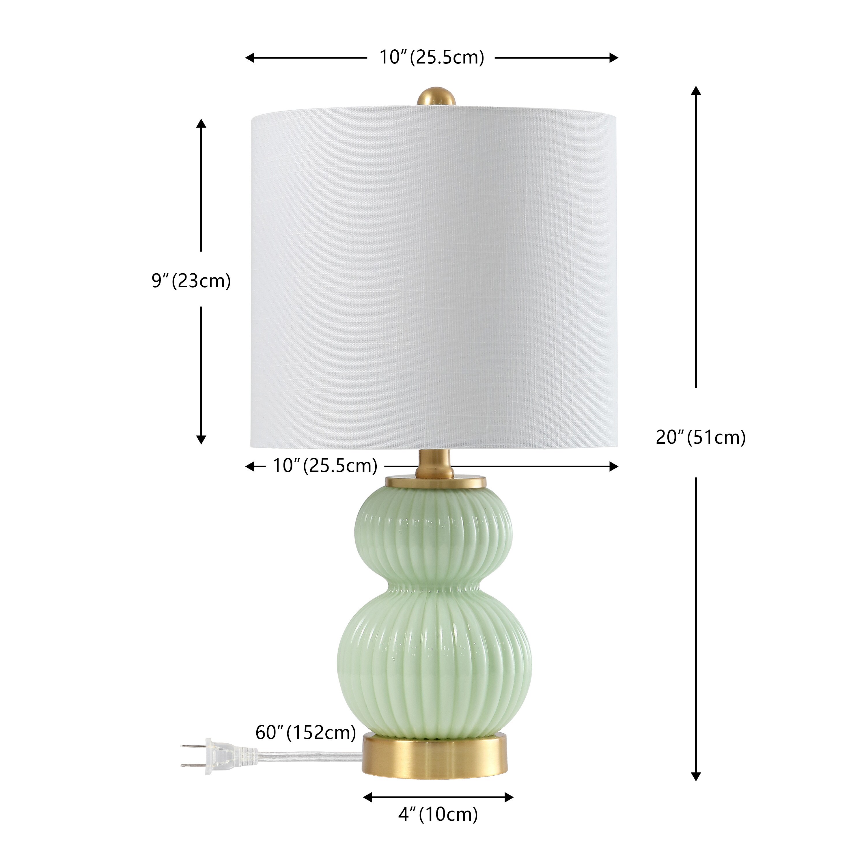 Perfectly scaled at 20" high, the light has the illusion of seeming taller thanks to its narrowly proportioned drum shade and vertical variegated texture on the base. With brass components and a silk-wrapped cord, this perfectly finished piece would add polish to any surface. Its versatile silhouette complements both modern and traditional interiors, making it a timeless addition to any room.