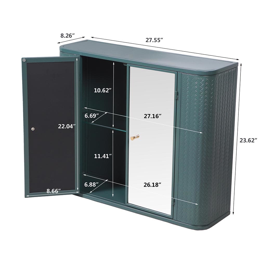 JUJABU Army Green Wall-Mounted Bathroom Cabinet with Mirror 2 Mirrored Doors and Open Shelf with Open Compartment for Vanity