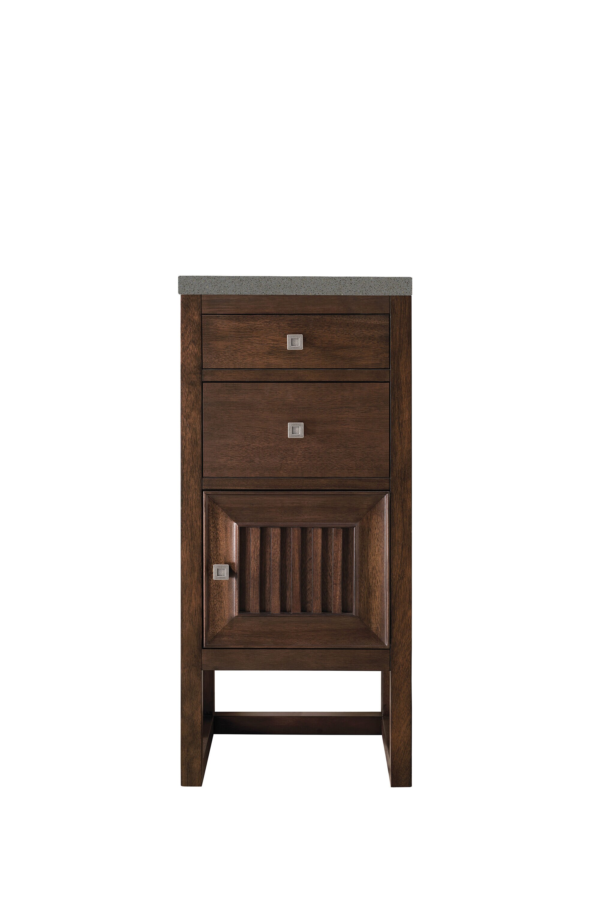 Make an elegant focal point in your bathroom with the Athens collection by James Martin Vanities. This durably crafted solid wood collection features tons of roomy storage options behind its sleek modern design. Constructed by expert craftsmen, this collection incorporates a wide variety of different pieces to address your every need. Its beautiful raised panel doors come with vertical grooved opening that allows you to either have it’s normal elegant acacia paneling showing through or if you want reverse it and show off the unique cork look in between those grooves giving you a more transitional look. This unique modular vanity collection is comprised of several different size vanities, mirrors, drawer units, tables and cabinets constructed from solid poplar hardwood and completed in either a mid-century acacia or glossy white finish. These pieces can be topped by any one of our eight custom tops giving that perfect look you been looking for. Soft closing doors and drawers provide smooth and quiet operations, while burnished bronzed finished metal hardware provides the perfect finishing touch. Other fine details include white porcelain sinks with overflow, dovetail joint drawer construction, predrilled holes to accommodate 8 in. widespread faucets, and multi-layer finish on the cabinets provide beauty and durability for years to come.