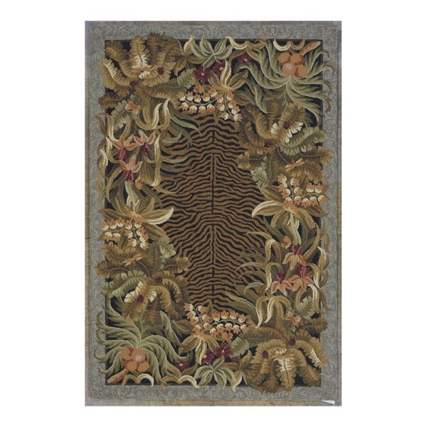 KAS Rugs Classy Casual 30-in x 50-in Rectangular Brown Floral Wool Accent Rug