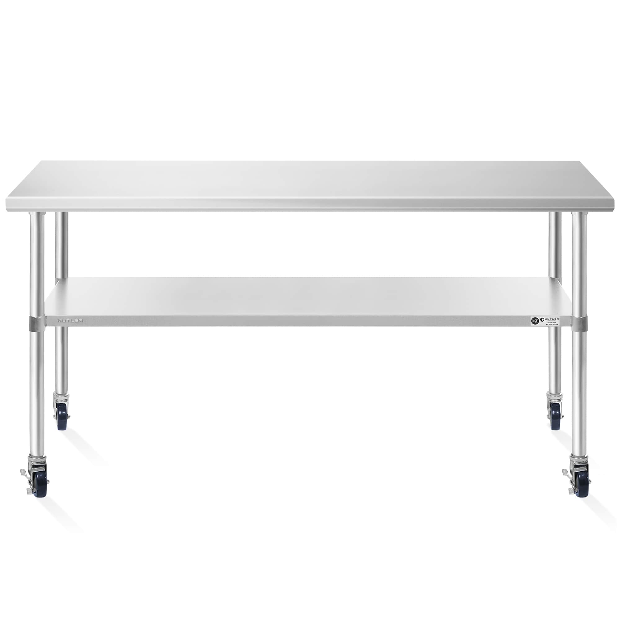 KUTLER 30 x 72-in NSF Commercial Stainless Steel Prep and Work Table w Wheels