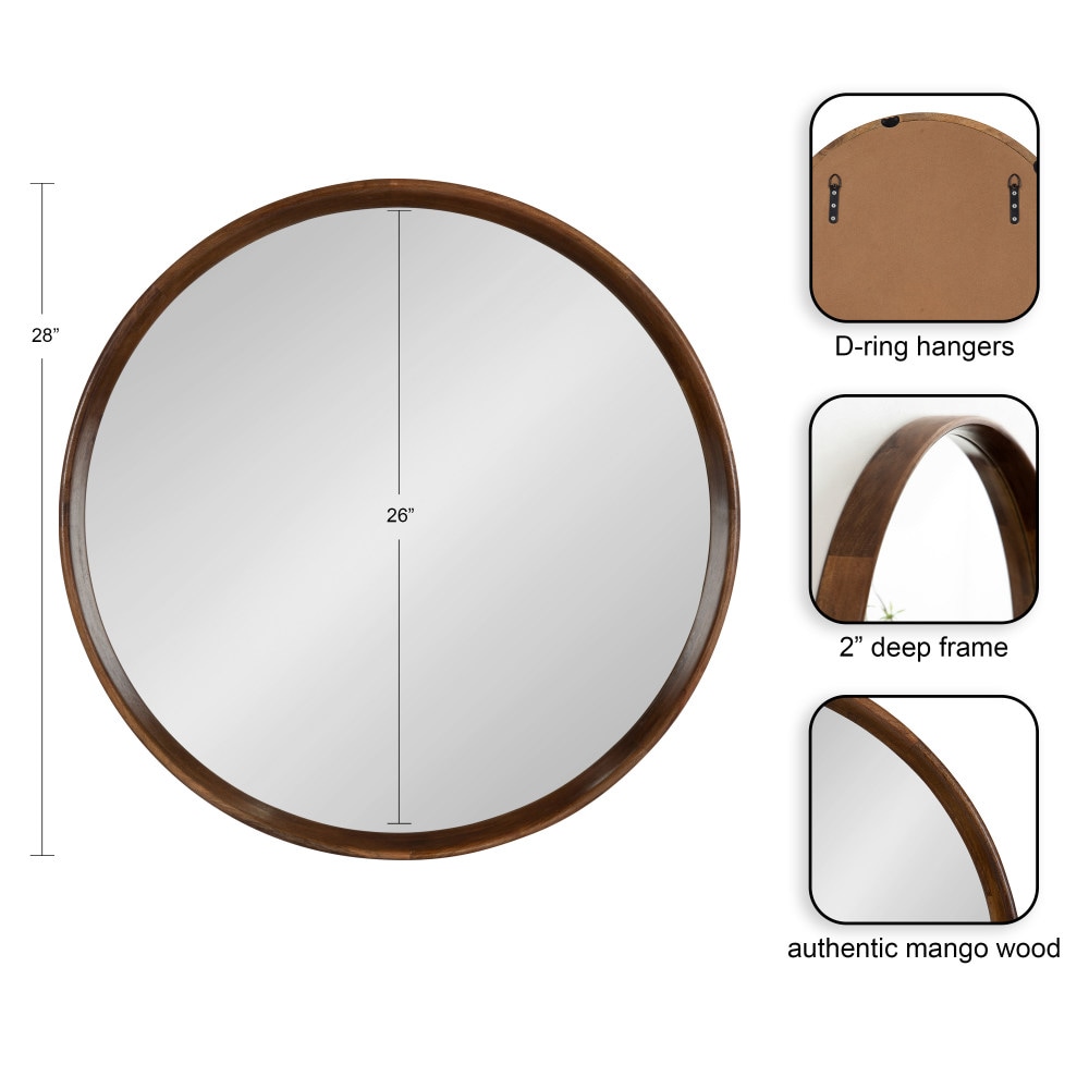 Kate and Laurel Prema 28-in W x 28-in H Round Walnut Brown Framed Wall Mirror