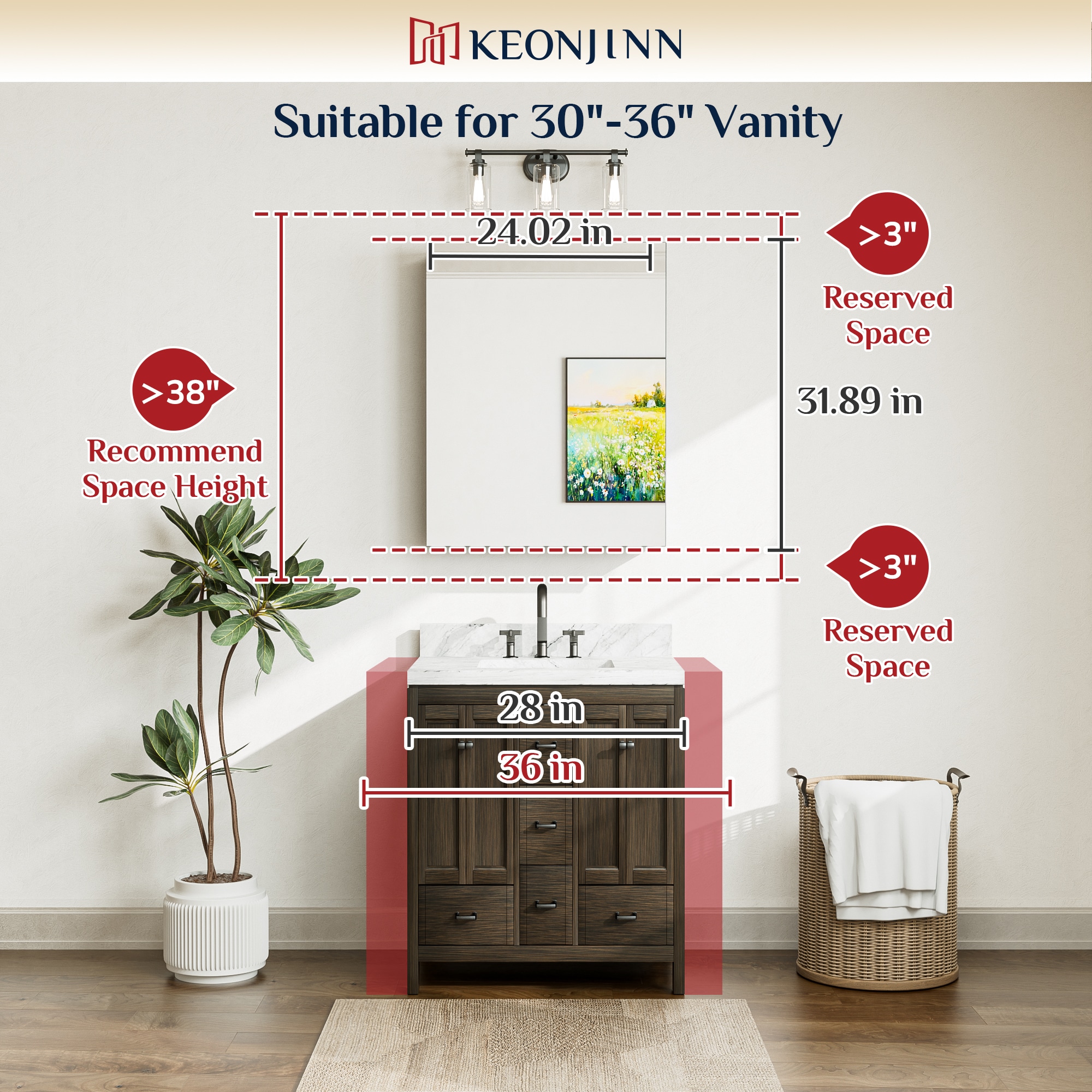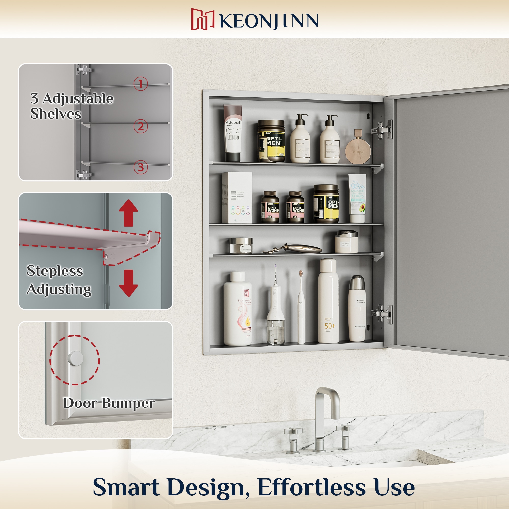 Keonjinn Medicine Cabinet Mirror 24-in x 32-in Surface/Recessed Mount Sliver Mirrored Rectangle Soft Close Medicine Cabinet