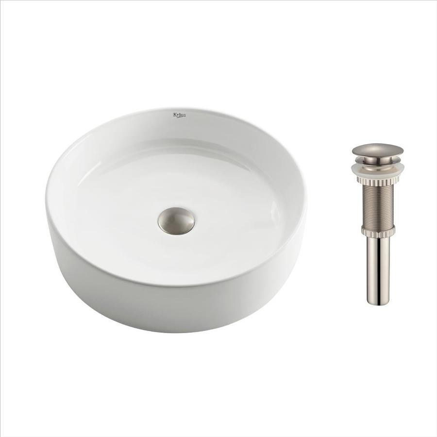 Kraus Ceramic White Drop-In Round Bathroom Sink (Drain Included)