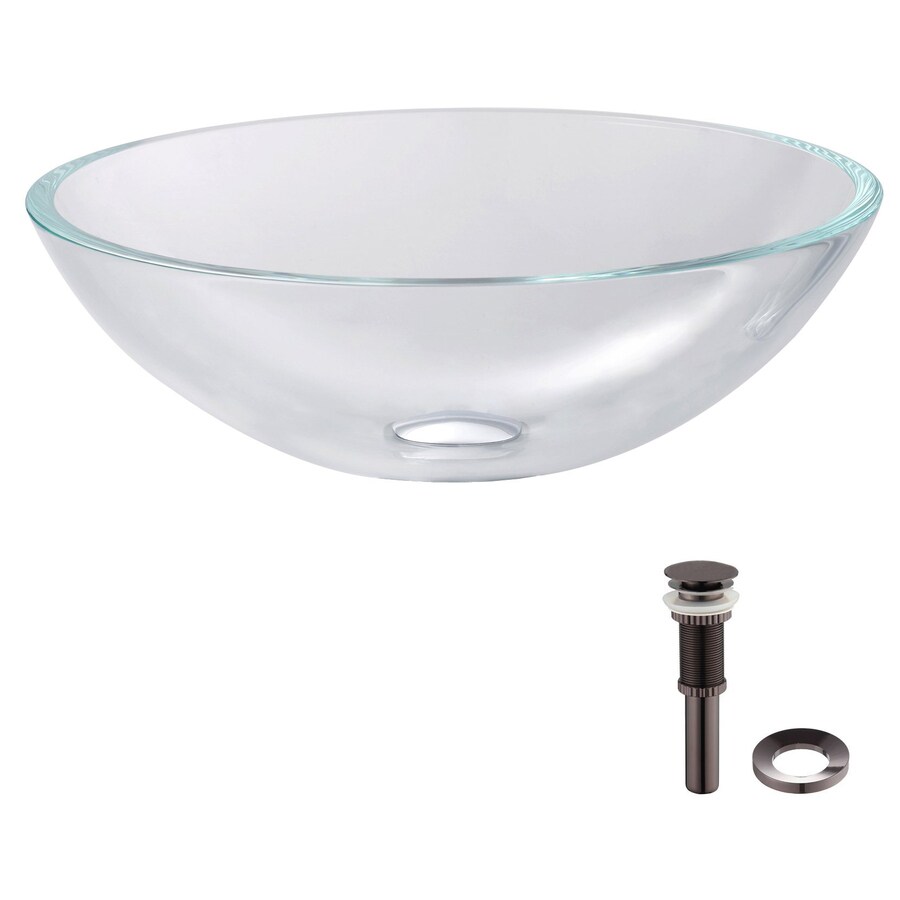 Kraus Crystal Clear Tempered Glass Drop-In Round Bathroom Sink (Drain Included)