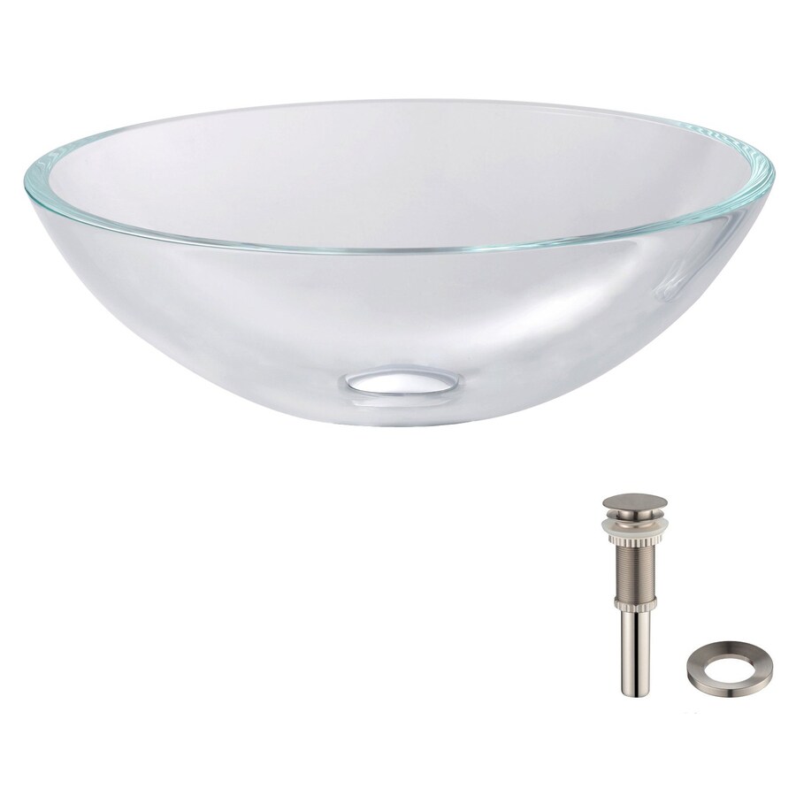 Kraus Crystal Clear Tempered Glass Drop-In Round Bathroom Sink (Drain Included)
