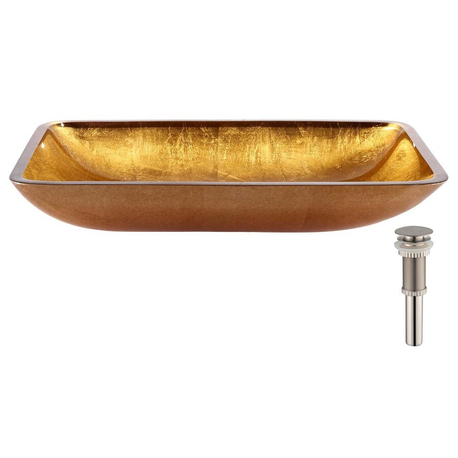 Kraus Golden Pearl Tempered Glass Drop-In Rectangular Bathroom Sink (Drain Included)
