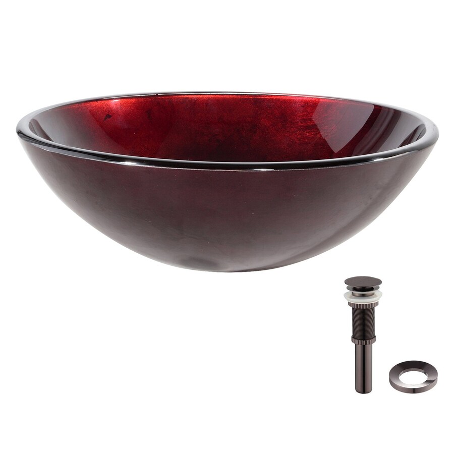 Kraus Irruption Red Tempered Glass Drop-In Round Bathroom Sink (Drain Included)