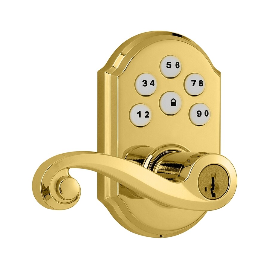 Make hiding your key under the doormat a thing of the past with this Kwikset universal electronic entry lever from the SmartCode collection. With 2 customizable access codes, you can quickly strengthen your home’s security and provide keyless access to guests and family members. The polished brass finish adds a stylish touch and the lighted keypad makes entering your code effortless, even in the dark. It automatically locks after 30 seconds, so you won’t have to worry when you’re racing out the door. Patented stainless steel side-locking bar technology protects against lock bumping for increased strength and durability. SmartKey® rekey technology allows you to change the lock in just 3 easy steps, eliminating the worry of misplaced keys. Simply install with a screwdriver and place on the door of your home office, storage room or garage for enhanced home safety.