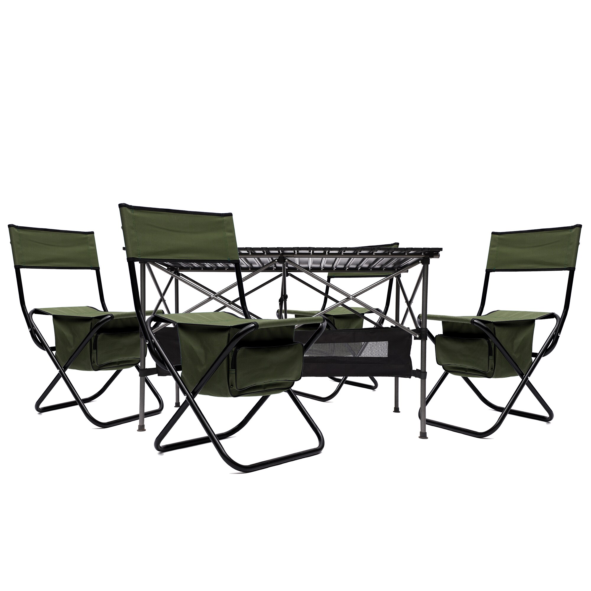 Complete outdoor set: includes 4 folding camping chairs and a table, providing a complete seating and surface solution for outdoor activities