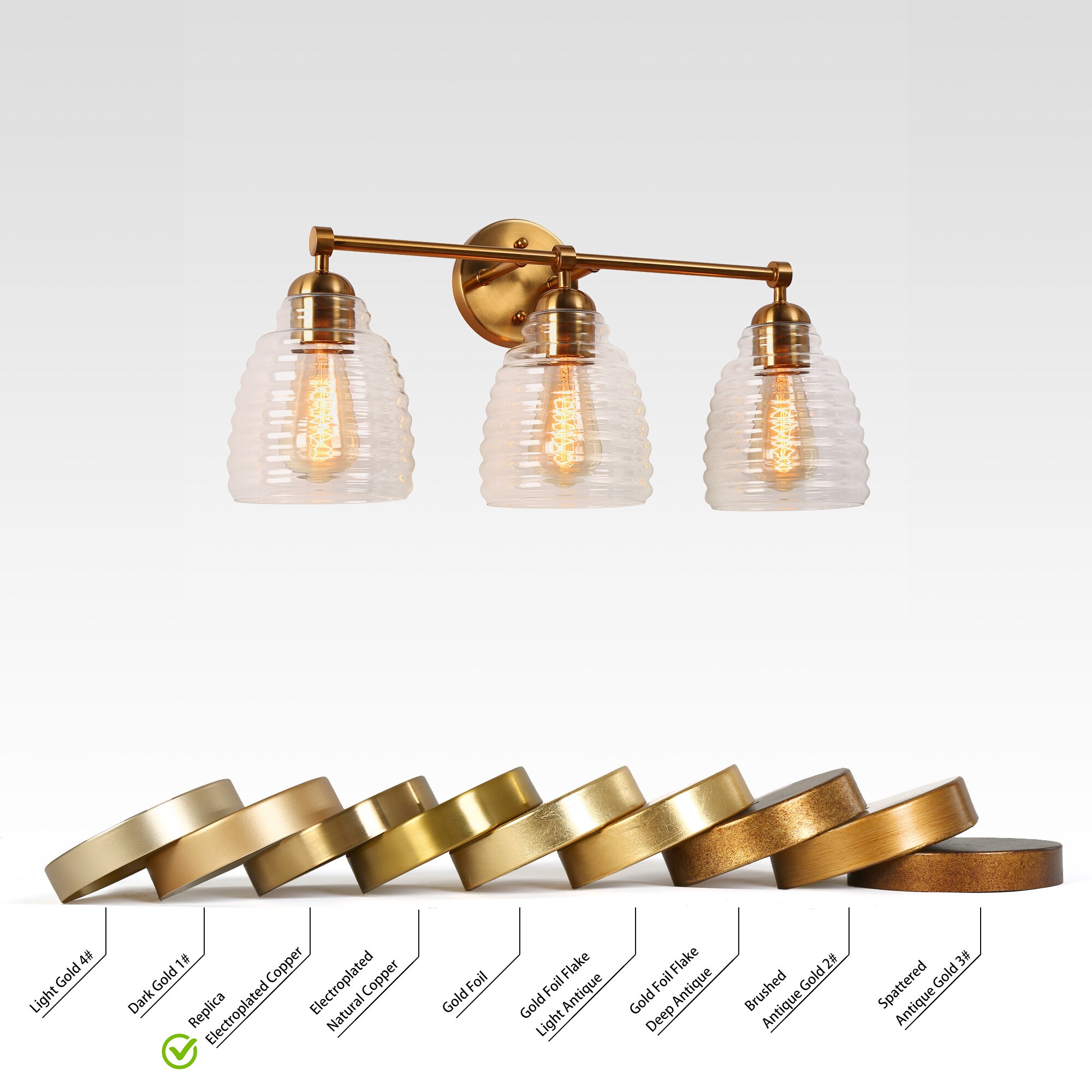 3-Light gold vanity light sizes: 23.5-in W x 7.5-in D x 10.5-in H, backplate: 4.7-in D