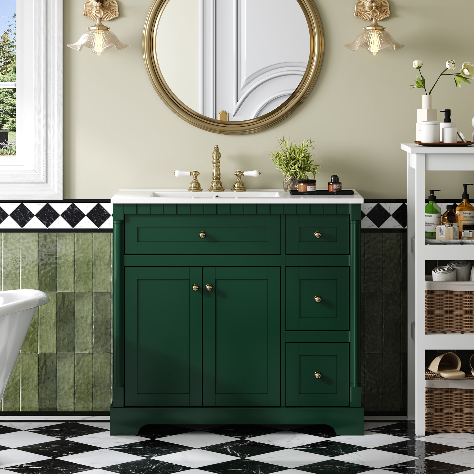 LOVMOR 36in Vanity with Top for Bathroom Modern Bathroom Storage Vanity Includes Adjustable Shelf Soft Closing Doors 3 Drawers and Tip Out Drawer