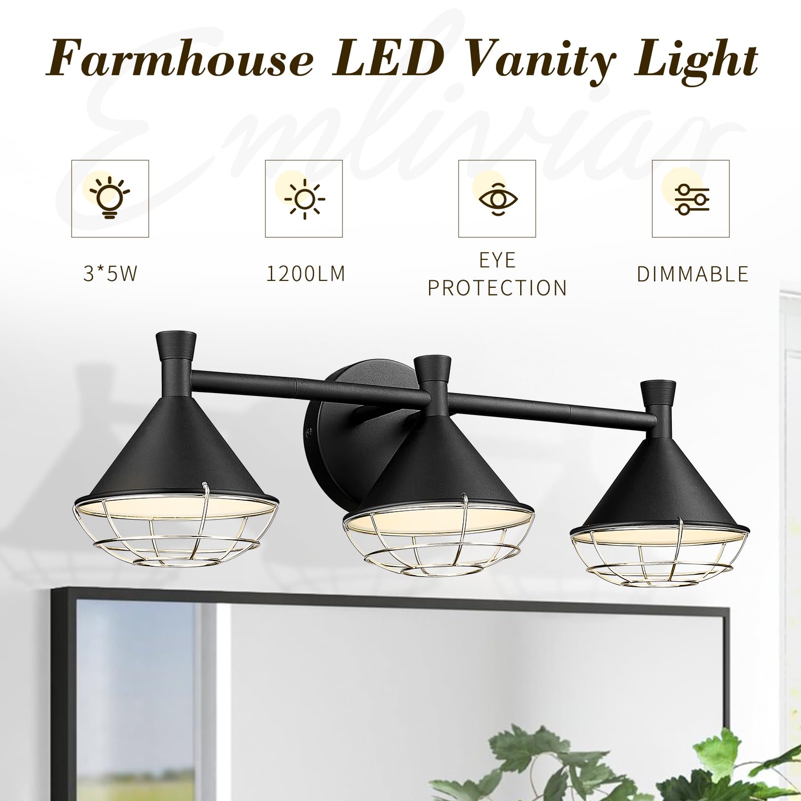 LTMATE JAZAVA 23-in 3 -Light Matte Black Integrated LED Industrial Vanity light