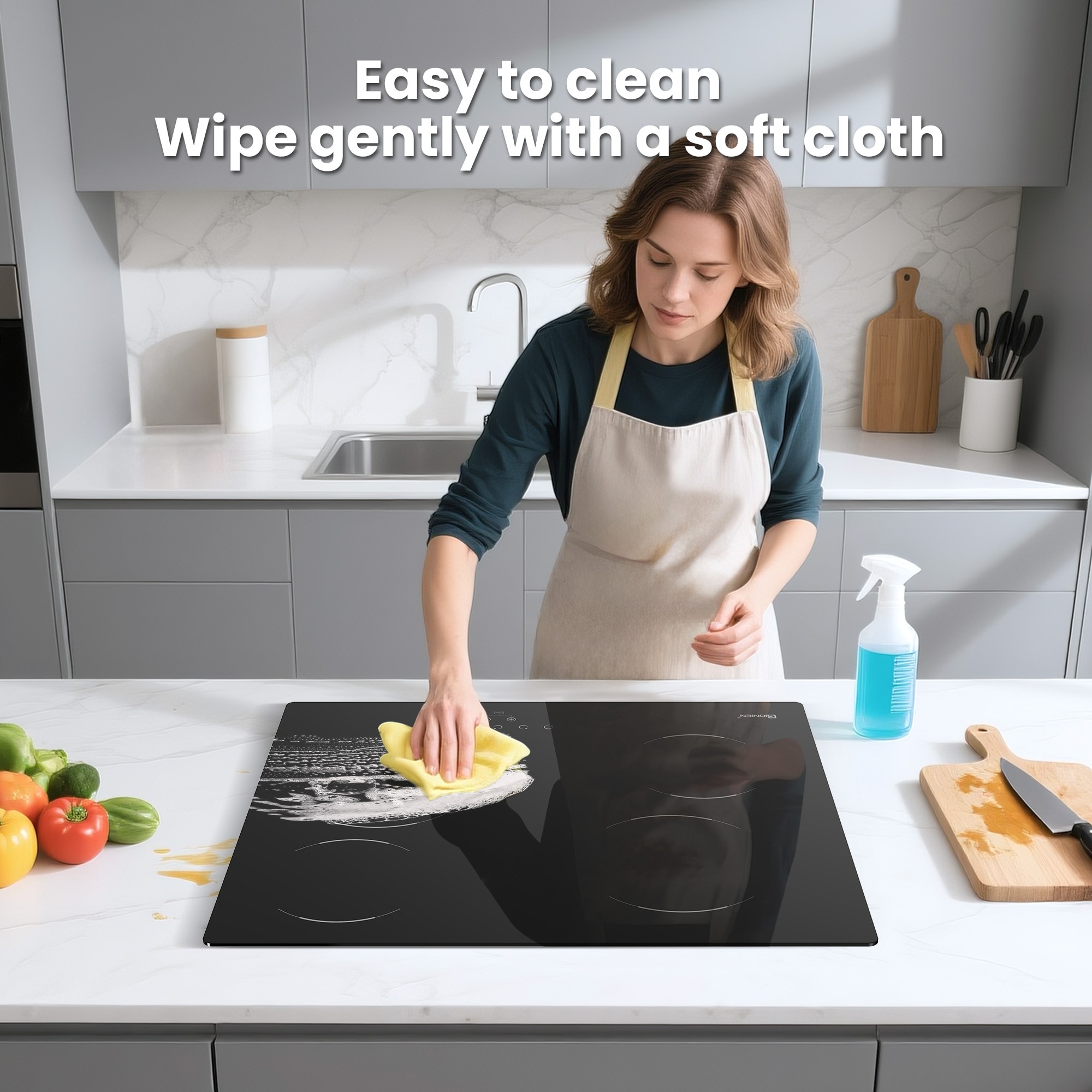 EASY TO CLEAN: The cooktop designed with a seamless surface and a smooth crystal glass is very easy to clean and maintain.