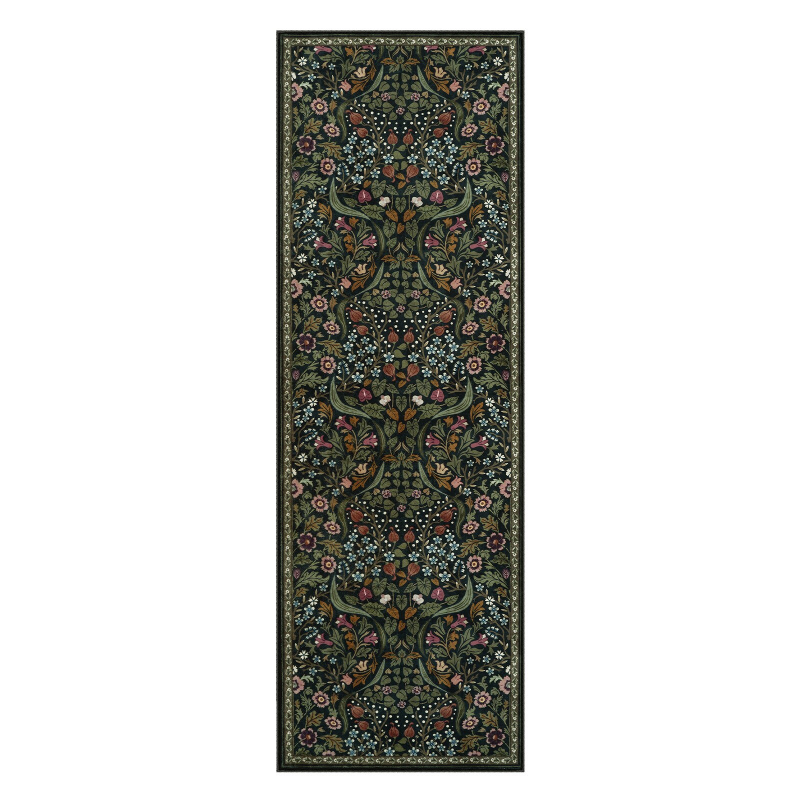 Lahome 2 x 6 (ft) Dark Green GST Intricate Floral Abundance Short Pile Velvet Rectangular Indoor Area Rug