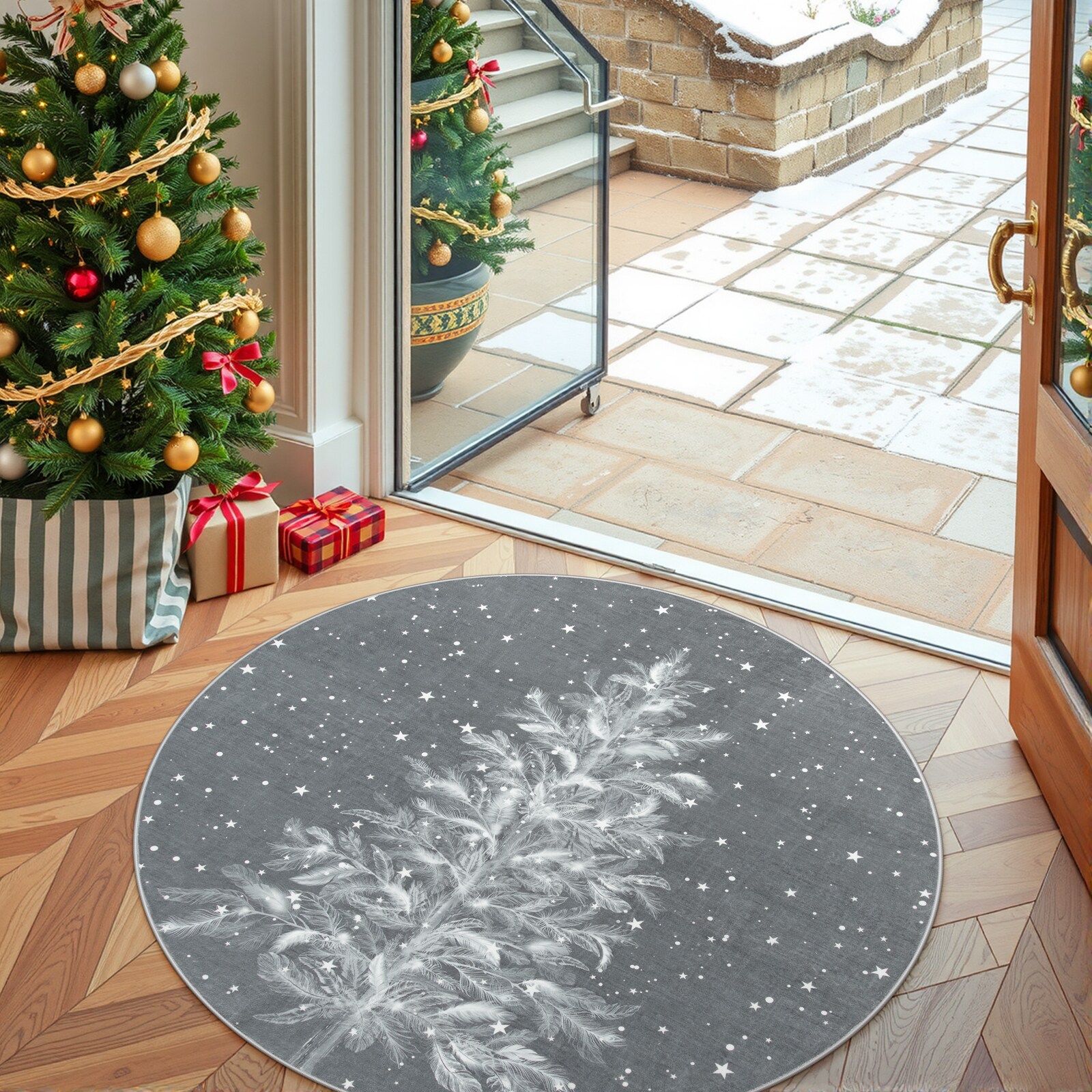 Lahome 3 x 3 (ft)Gray Christmas Forest Deer Moroccan Full Coverage Pearl Velvet Rectangular Indoor Area Rug