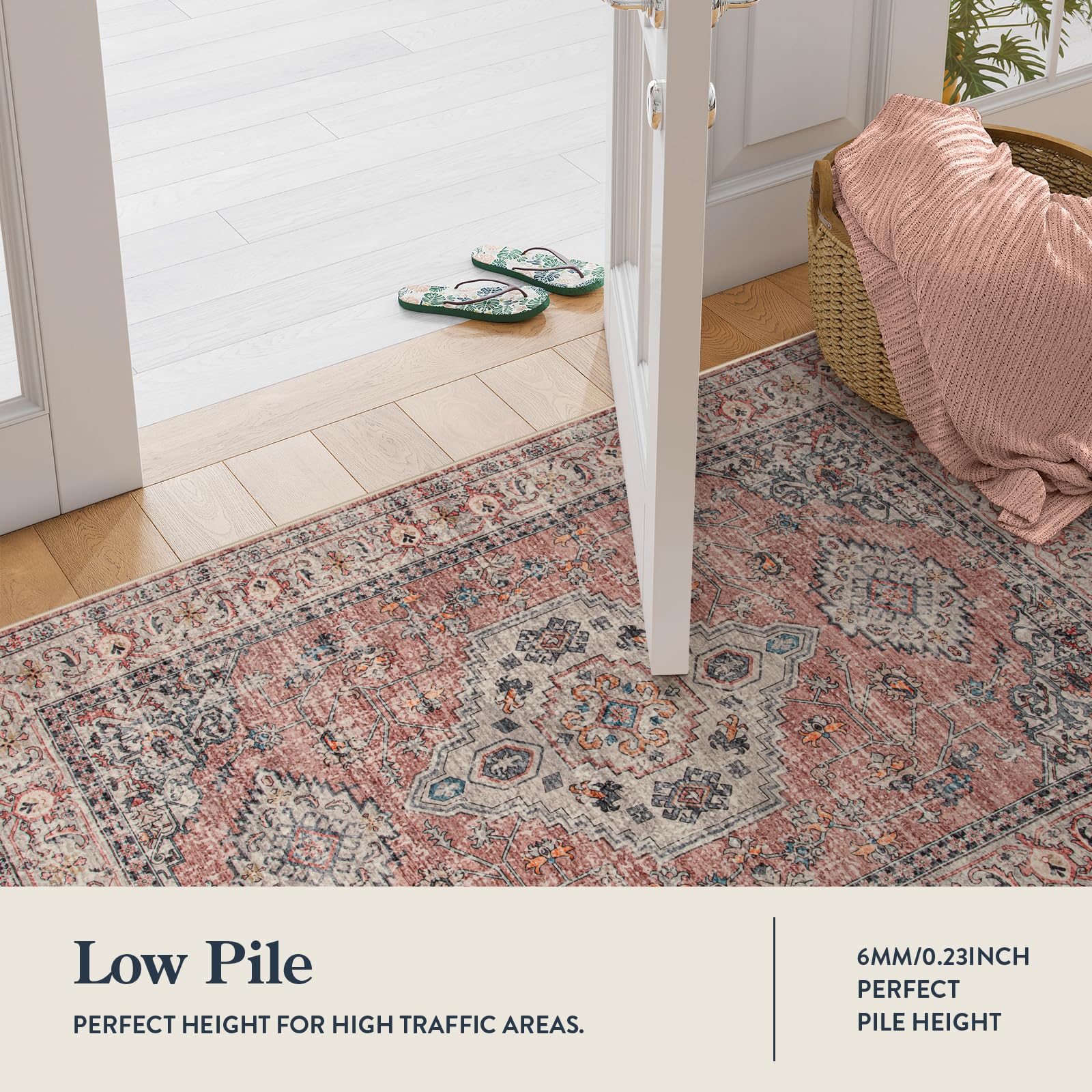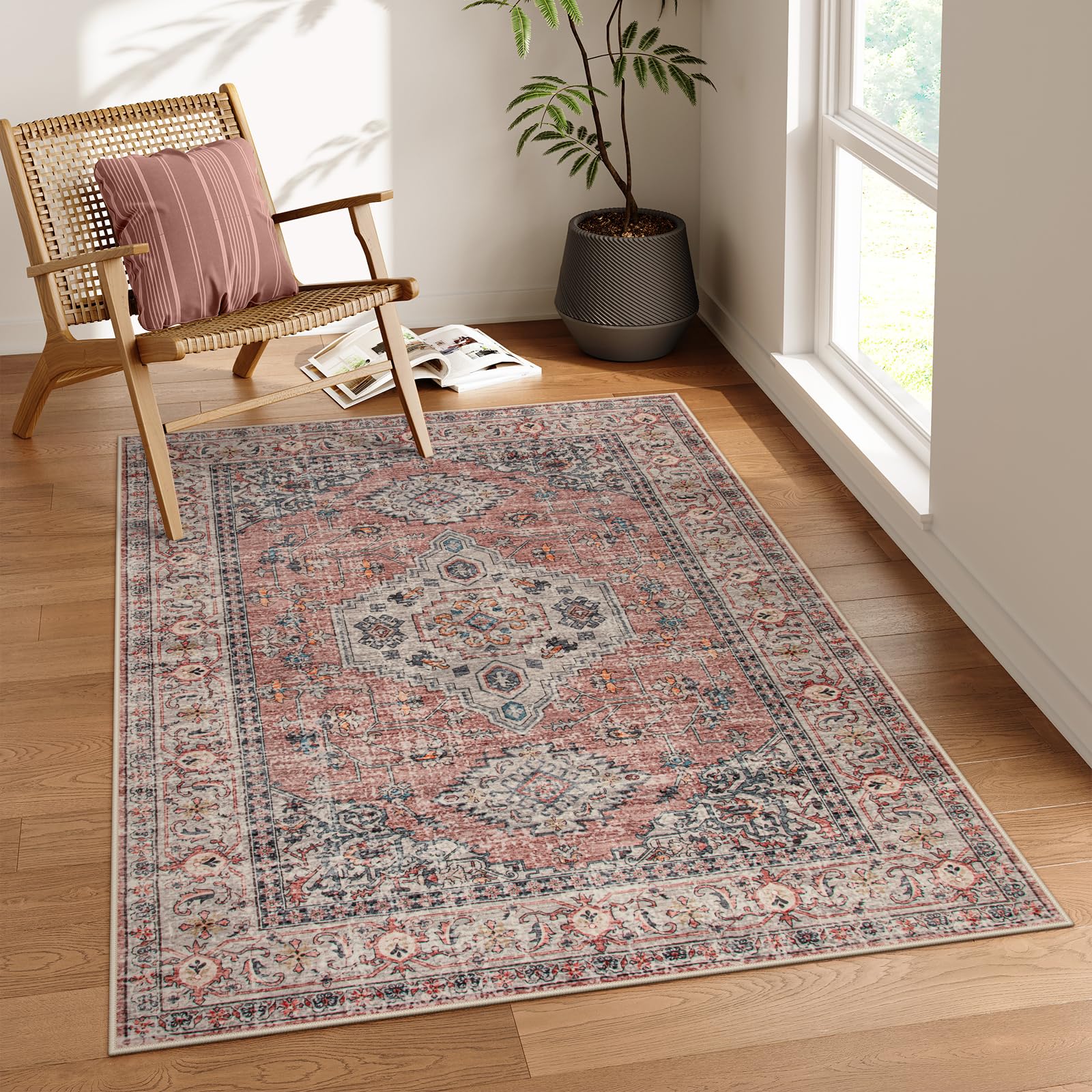 Lahome 4 x 6 (ft) Khaki Persian Medallion Short Pile Velvet Rectangular Indoor Area Rug