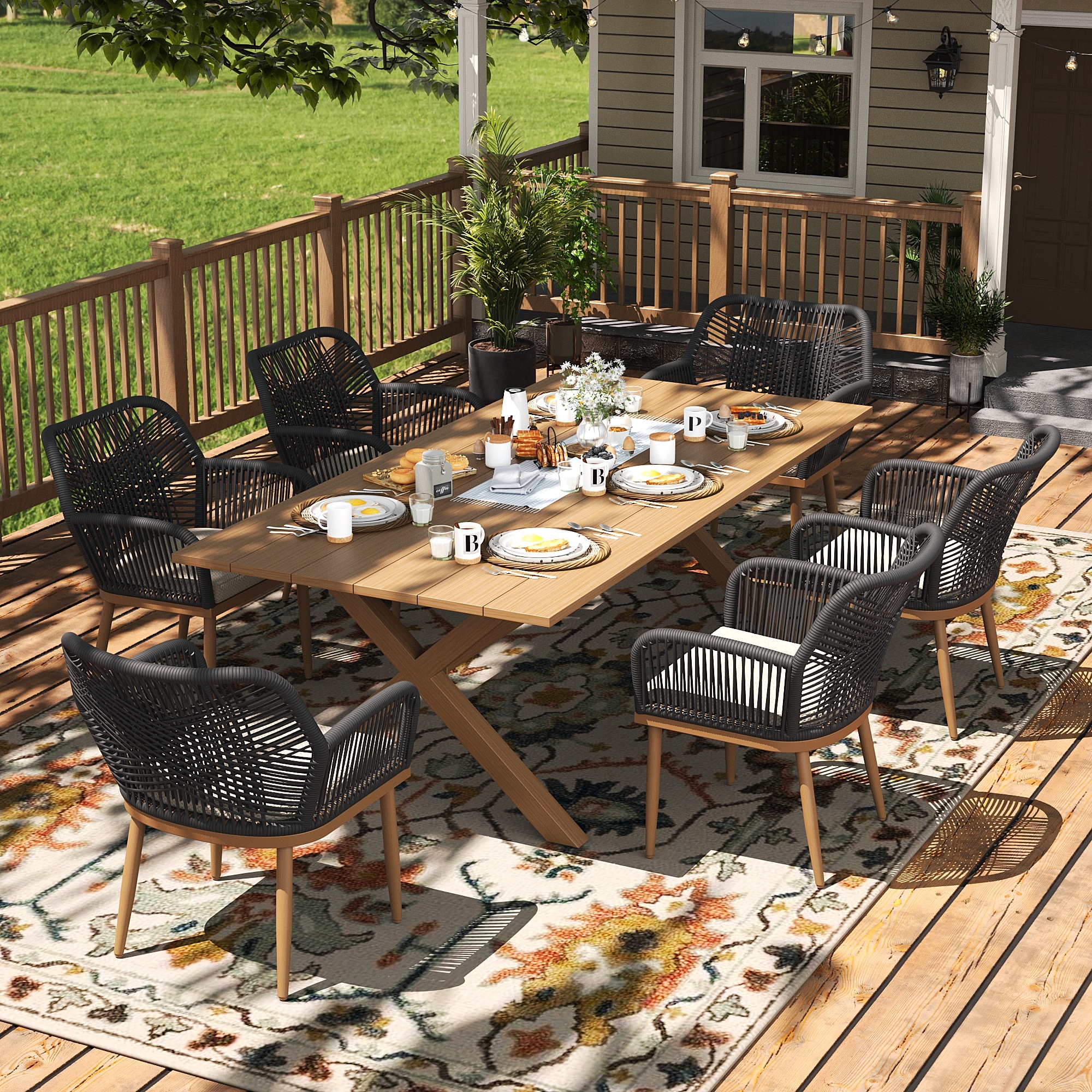 LayinSun 7 Piece Outdoor Dining Set with Aluminum Dining Table and All-Weather Rope Weave Chairs set