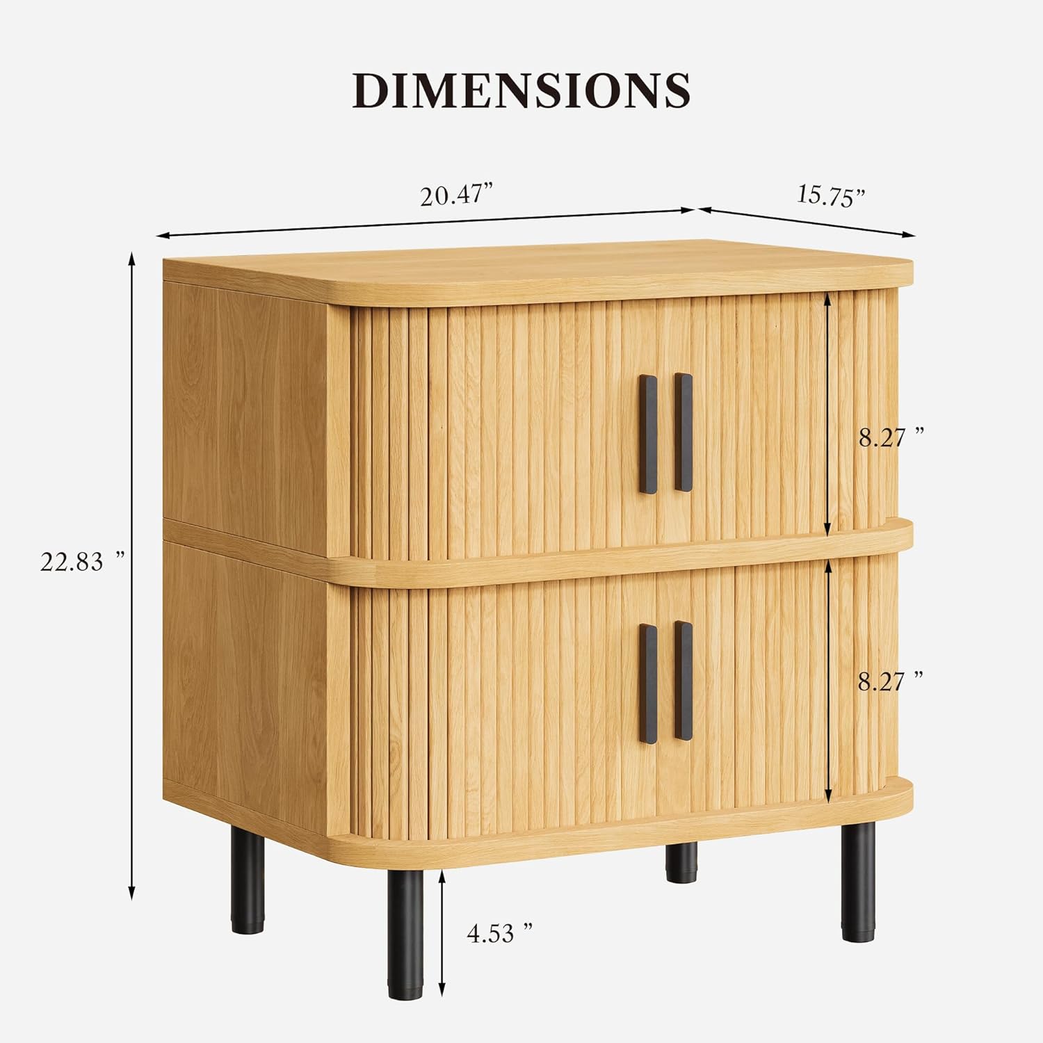 Likemet 20.47-in W Natural Oak Fluted Nightstand with Sliding Tambour Door and 2 Storage Spaces