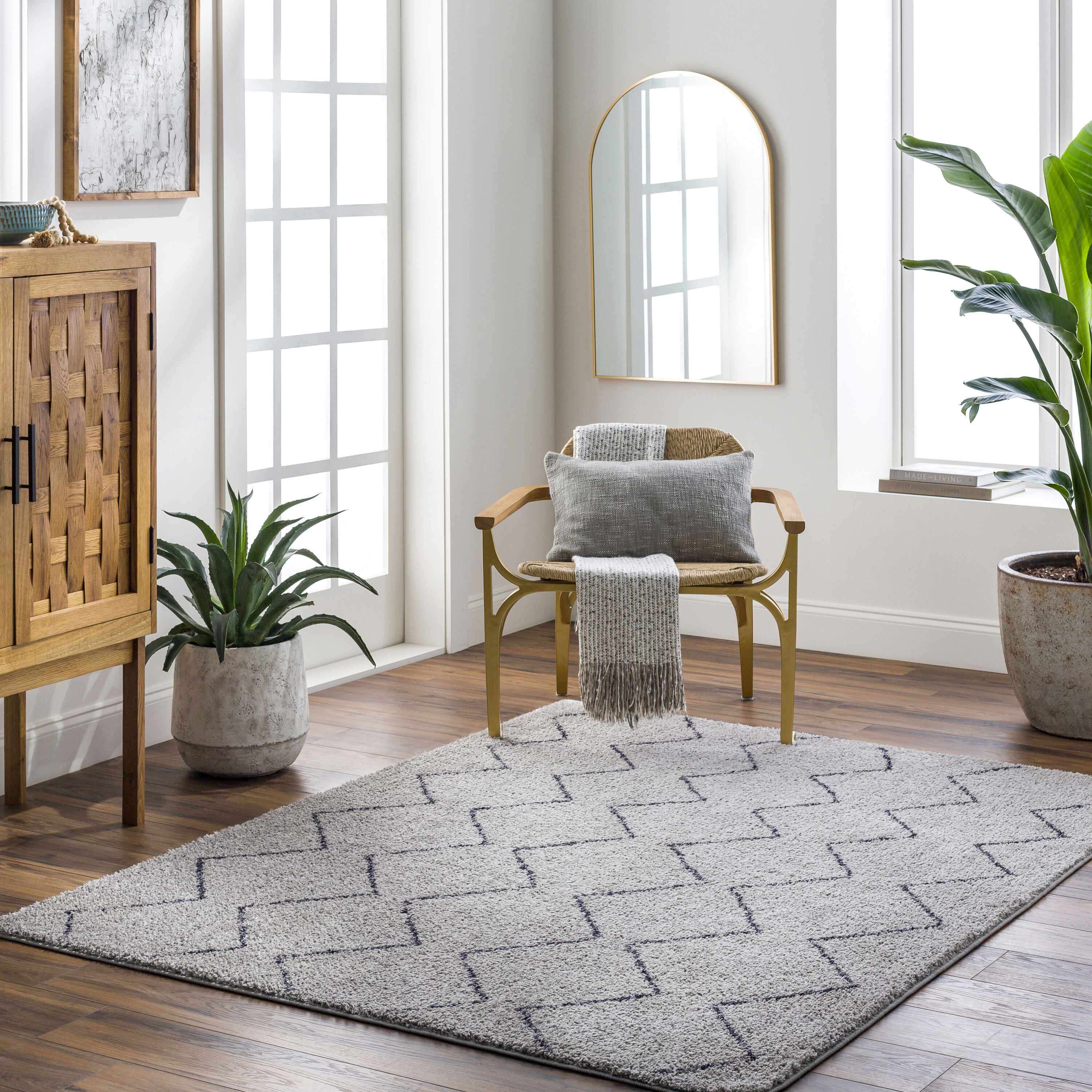 Livabliss Lykke 5 x 7 (ft) Polyester Light Gray Rectangular Indoor Geometric Bohemian/Eclectic Machine washable Area rug