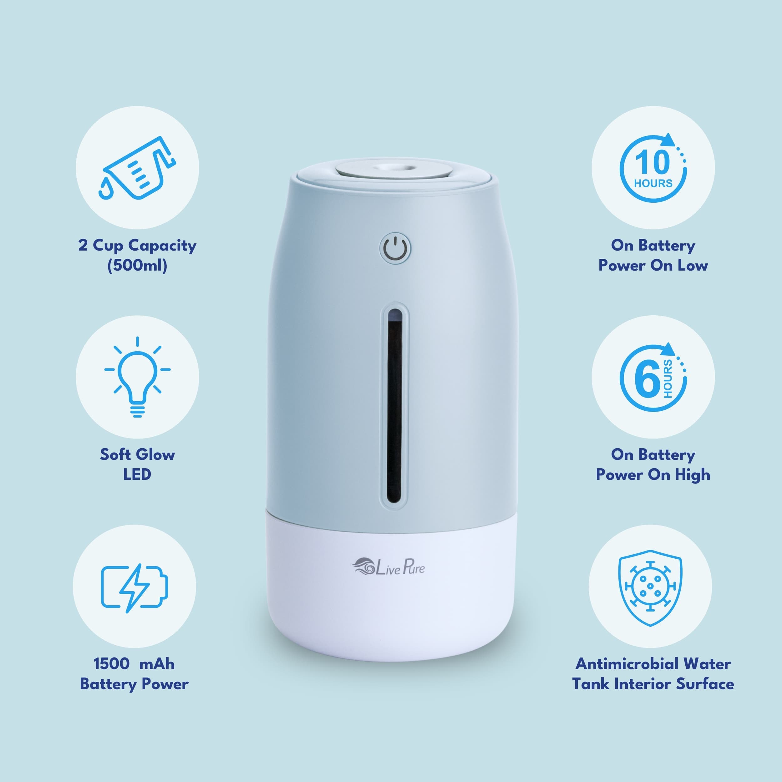 LivePure Cool Mist Portable 2 Cup Ultrasonic Cool Mist Humidifier - Blue Mist