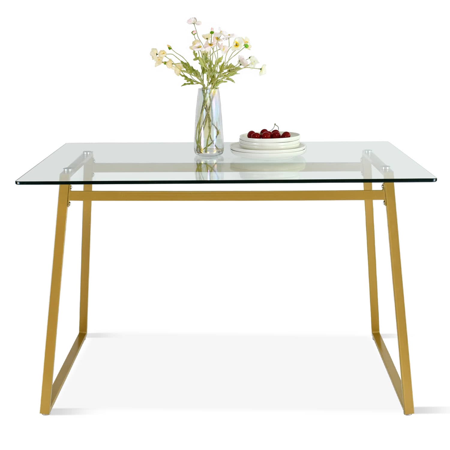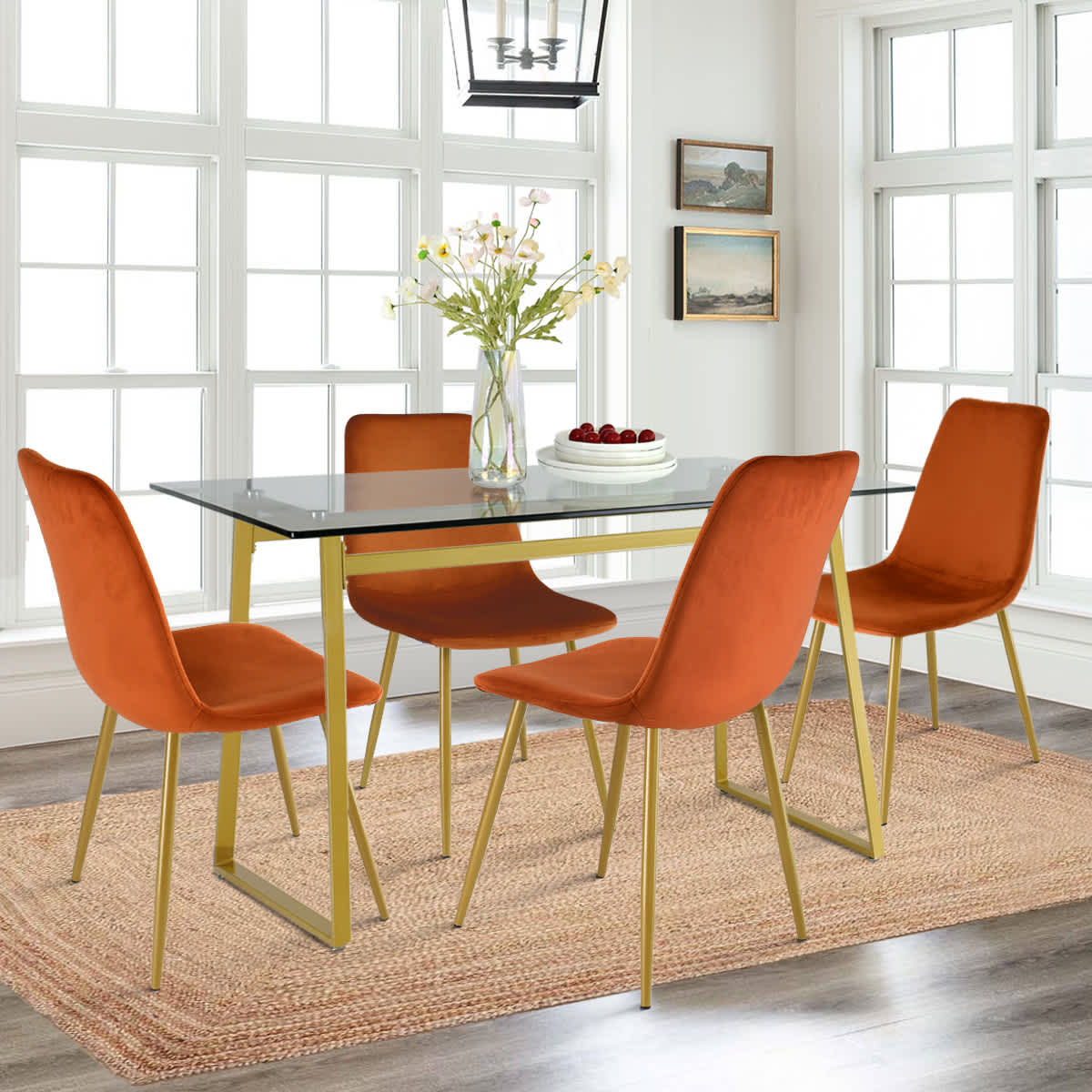 Maison Boucle 5 Piece Gold Rectangular Glass Dining Table with 4 Terra Upholstered Chairs for Elegant Dining