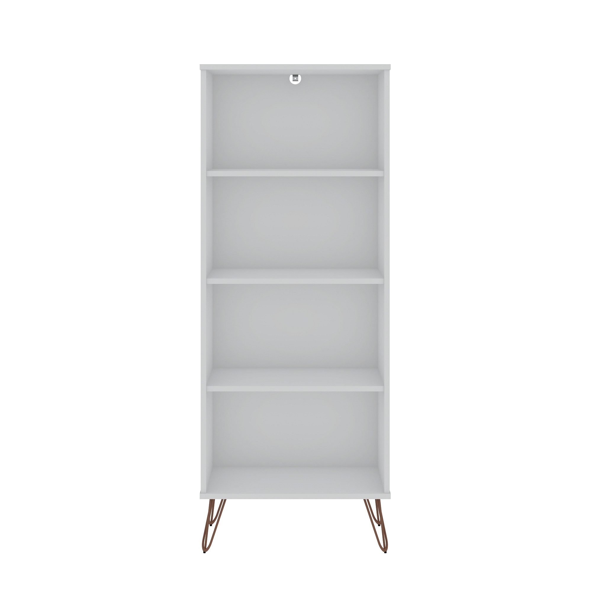Showcase your books and decorative accents the right way with this bookshelf that plays up functionality and convenience in a modern and artful way. Mid-century modern touches like splayed metal legs and a streamlined silhouette easily work in any space. Ample shelving space is perfect for displaying all your favorite things, personal items, and plenty of great reads.