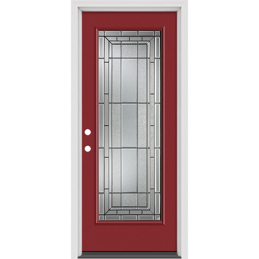 Masonite Sequence 32-in x 80-in x 4-9/16-in Fiberglass Right-hand inswing Roma Red Painted Prehung Residential Insulating core Front Door