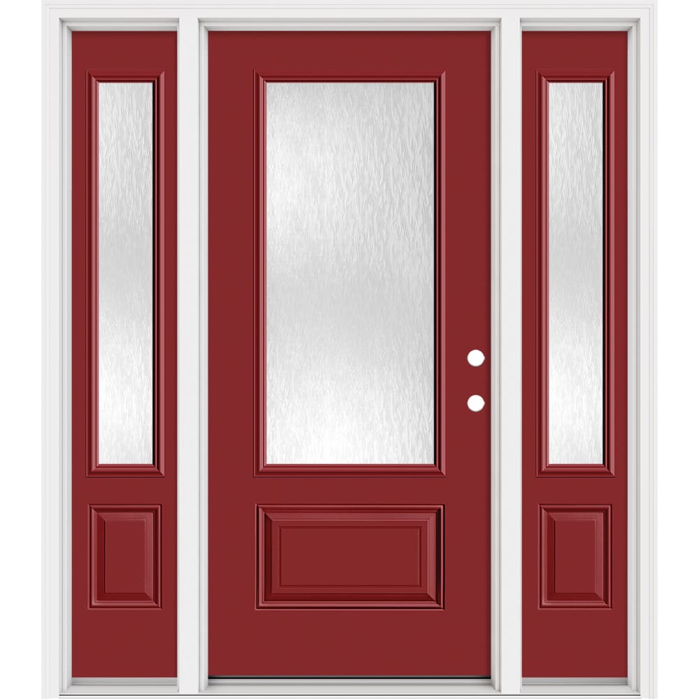 Masonite Steel Doors Series 64-in x 80-in x 4-9/16-in Steel 3/4 lite Left-hand inswing Roma Red Painted Prehung Front Door with Sidelights with Brickmould Insulating core