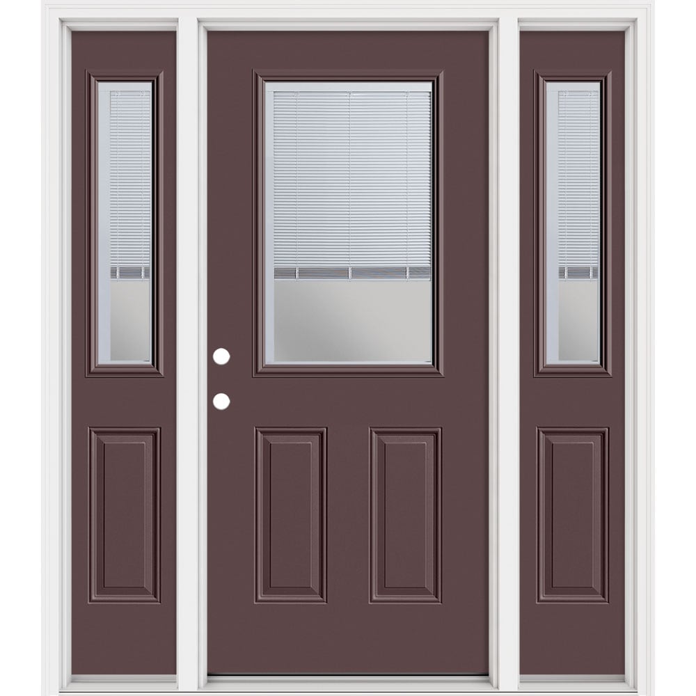 Masonite Steel Doors Series 64-in x 80-in x 4-9/16-in Steel Half lite Right-hand inswing Currant Painted Prehung Front Door with Sidelights with Brickmould Insulating core
