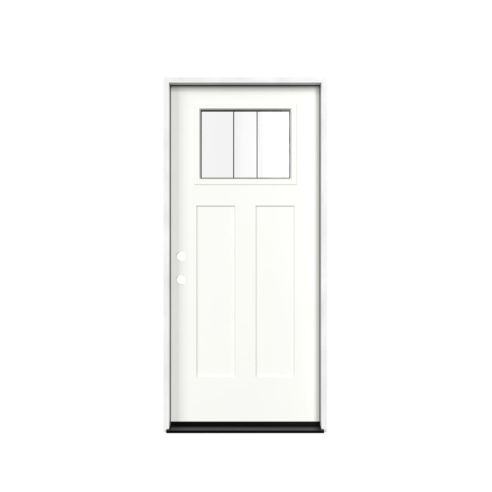 Masonite M-protect Lumen Glass 36-in x 80-in x Fiberglass Right-hand inswing Arctic White Painted Prehung Slab Residential Solid core Front Door