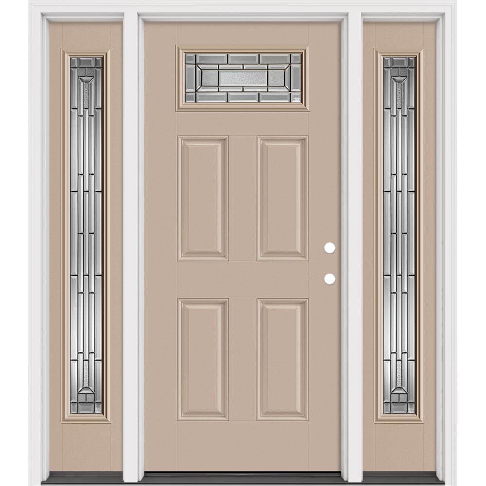 Masonite Sequence 64-in x 80-in x 4-9/16-in Fiberglass Left-hand inswing Sandy Shore Painted Prehung Slab Residential Insulating core Front Door