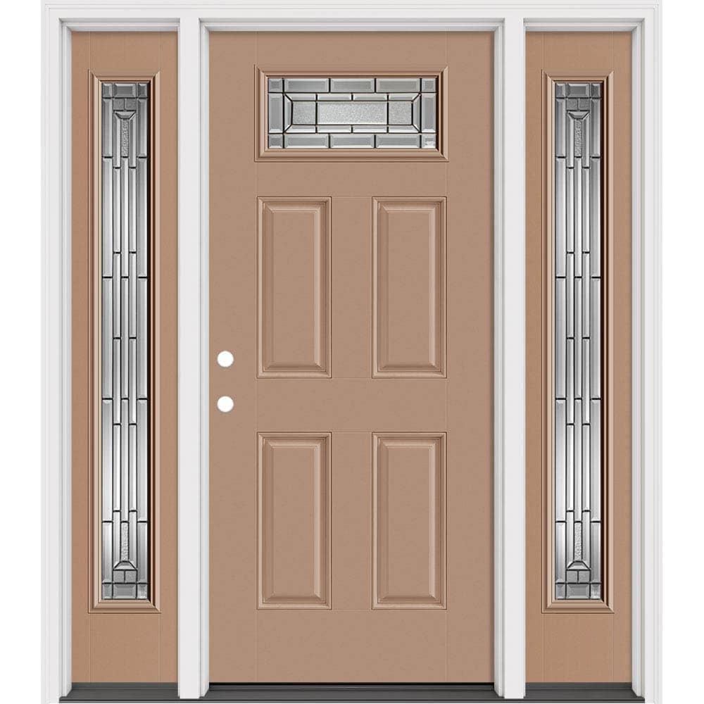Masonite Sequence 64-in x 80-in x 4-9/16-in Fiberglass Right-hand inswing Warm Wheat Painted Prehung Slab Residential Insulating core Front Door