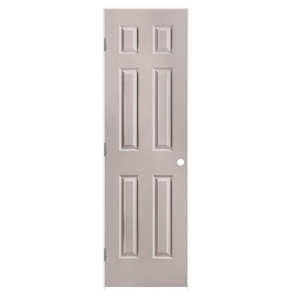Masonite 24-in x 80-in Driftwood Solid core 6-panel Right hand Textured Prefinished Molded composite Flat Jamb Single Prehung Interior Door