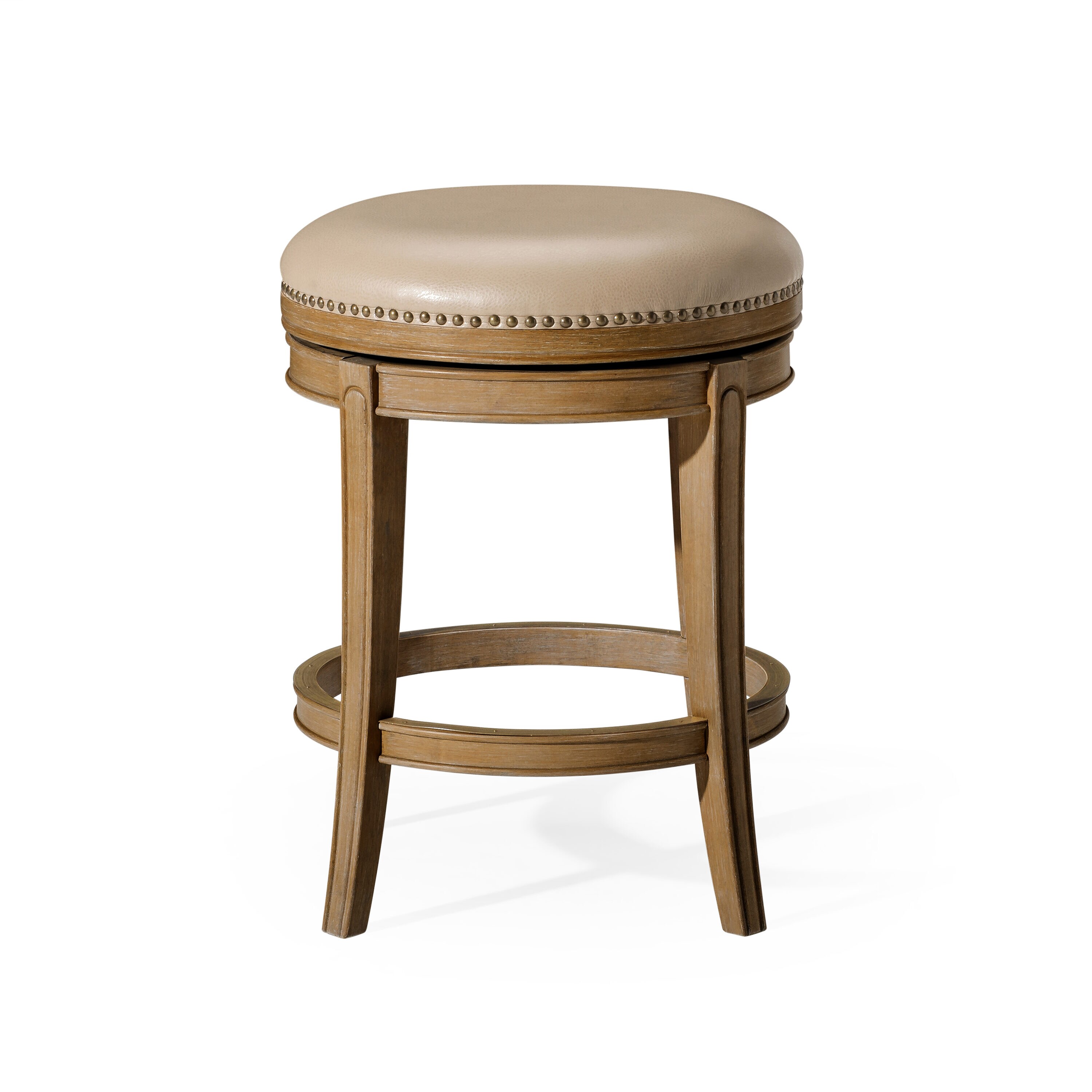 Maven Lane 26in Alexander Backless Counter Stool in Weathered Oak Finish with Avanti Bone Vegan Leather
