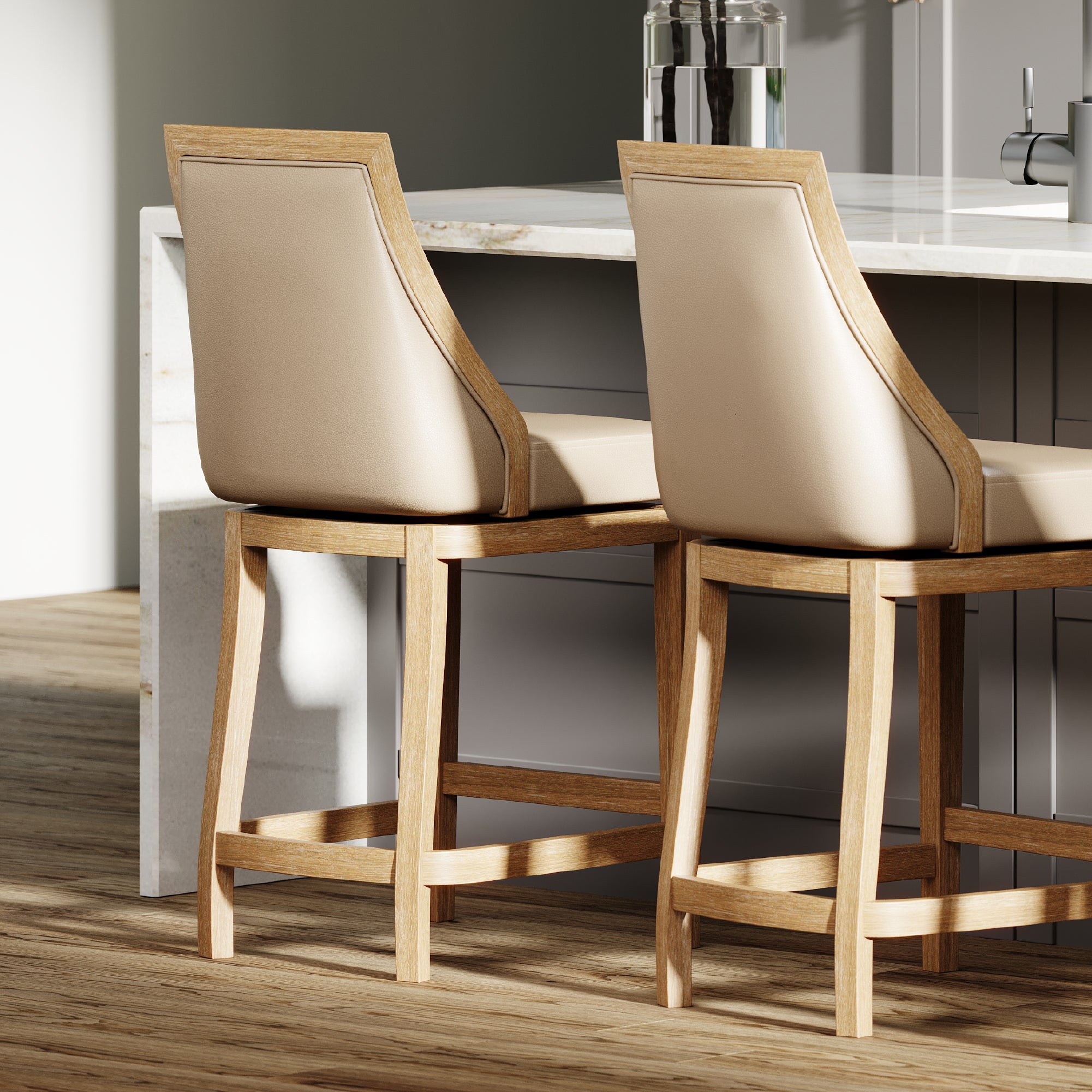 Maven Lane 26in Vienna Counter Stool in Weathered Oak Finish with Avanti Bone Vegan Leather