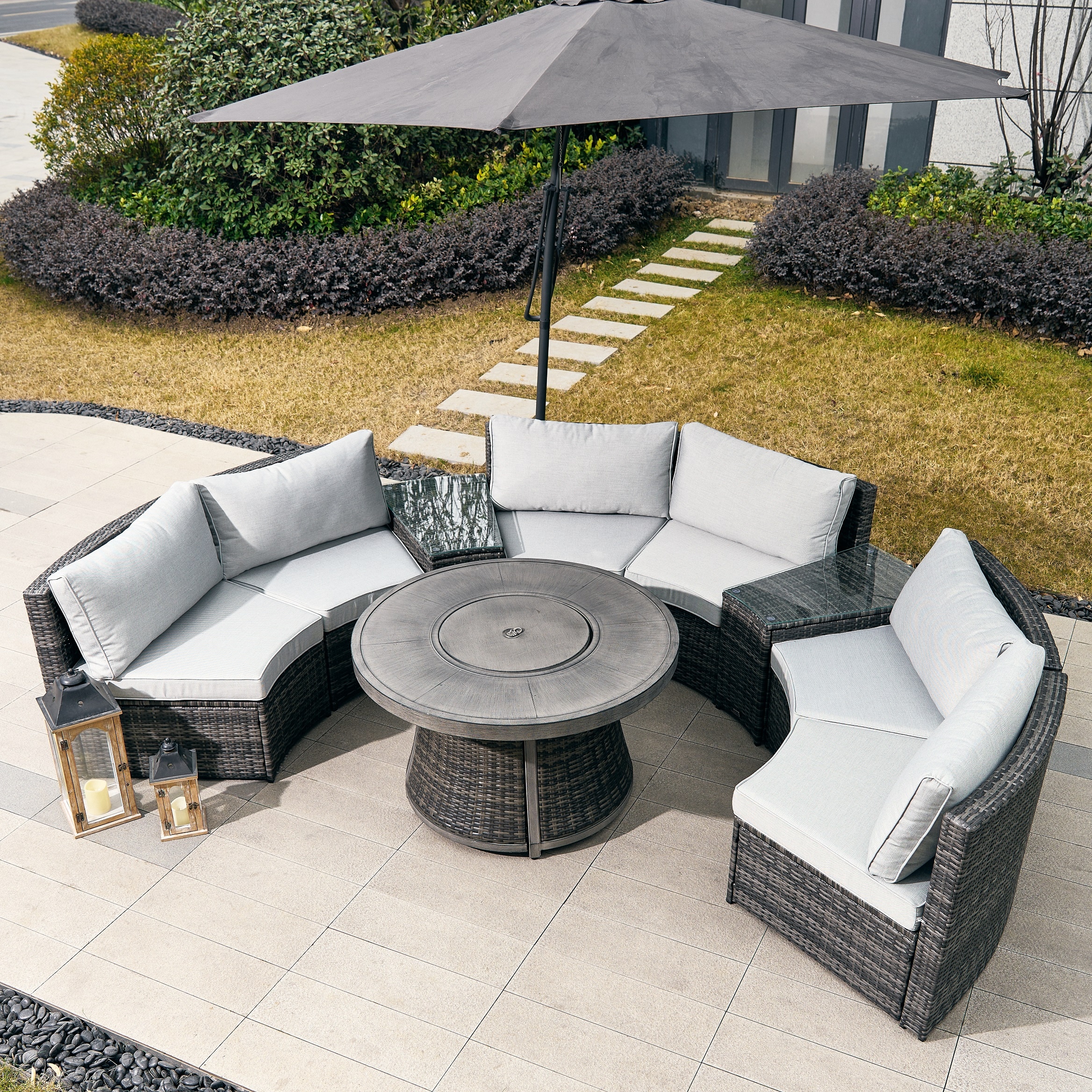 Moda Furnishings Maine 6 -Piece Wicker Patio Sofa Conversation Set with Gray Cushions