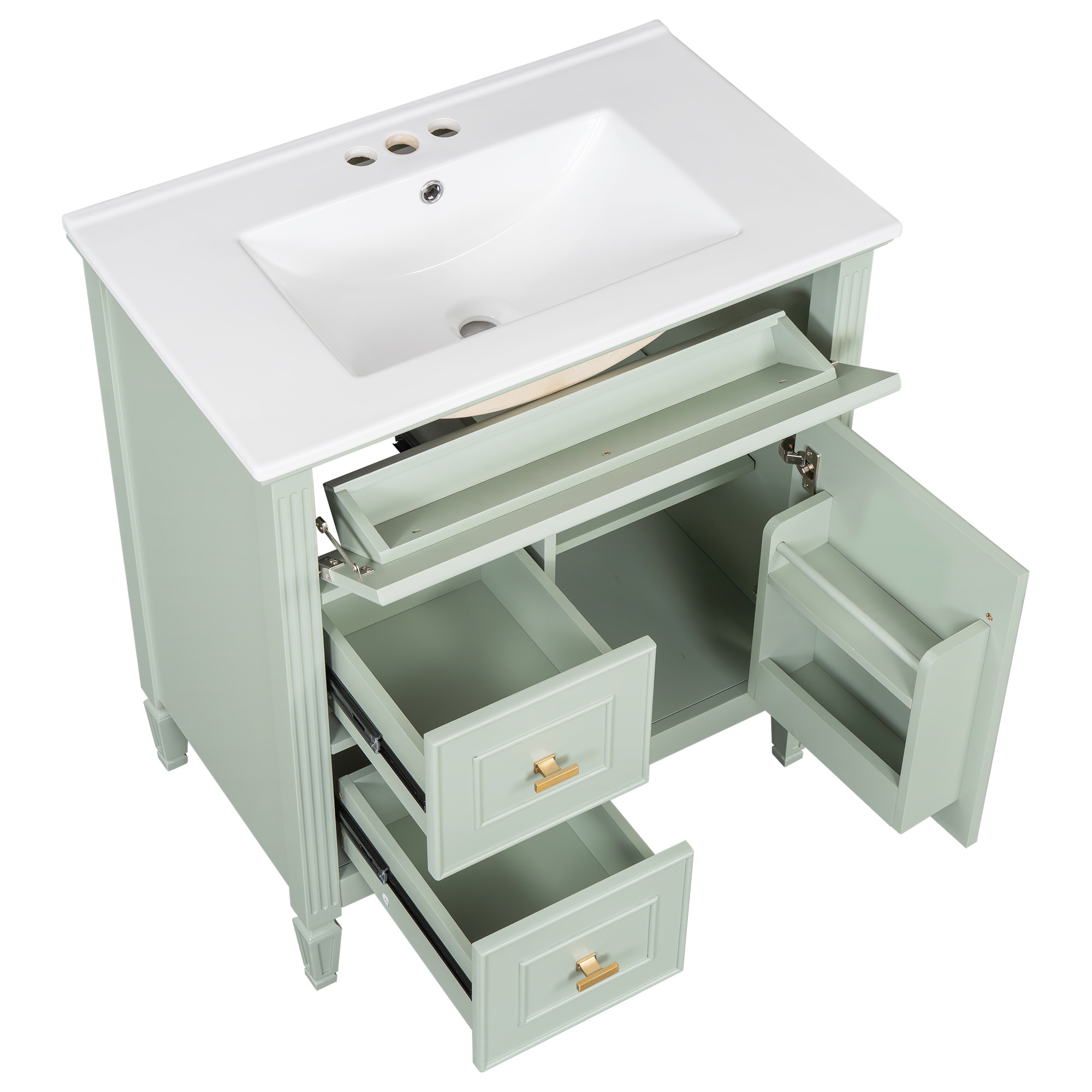 Durable Design for Humid Environments: Crafted specifically for bathroom conditions, this vanity is built to withstand the humidity and splash-proof that often comes with daily use; The sealed storage compartments keep your items dry and safe, ensuring longevity and functionality, while offering a sleek, modern look to your space;
