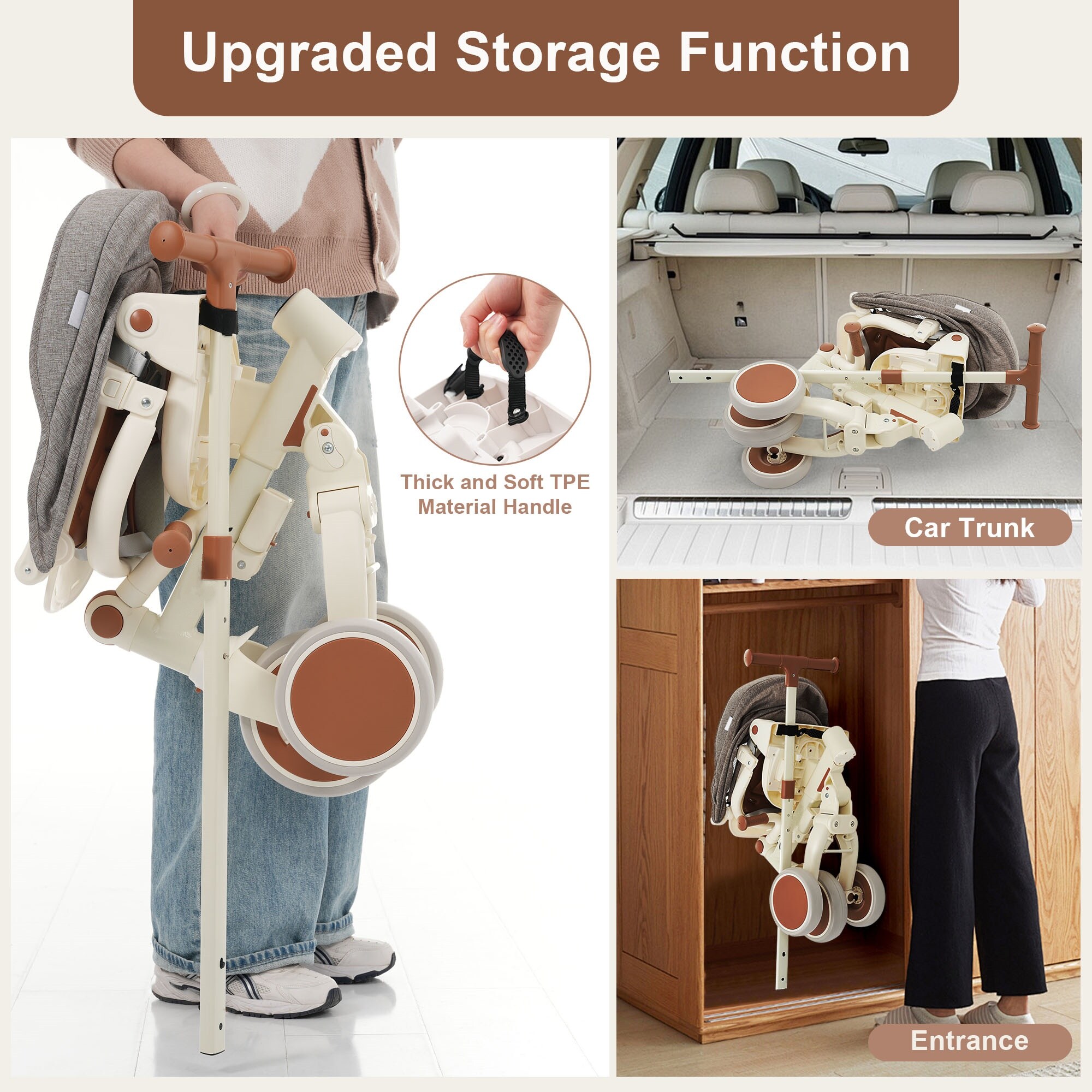 ModernLuxe 7 in 1 Baby Tricycle Foldable Toddler Tricycle with Removable and Adjustable Parent Handle Toddler Push Bike with Removable Pedal Canopy and Guardrail Tricycle for 1272 Months ivory and brown