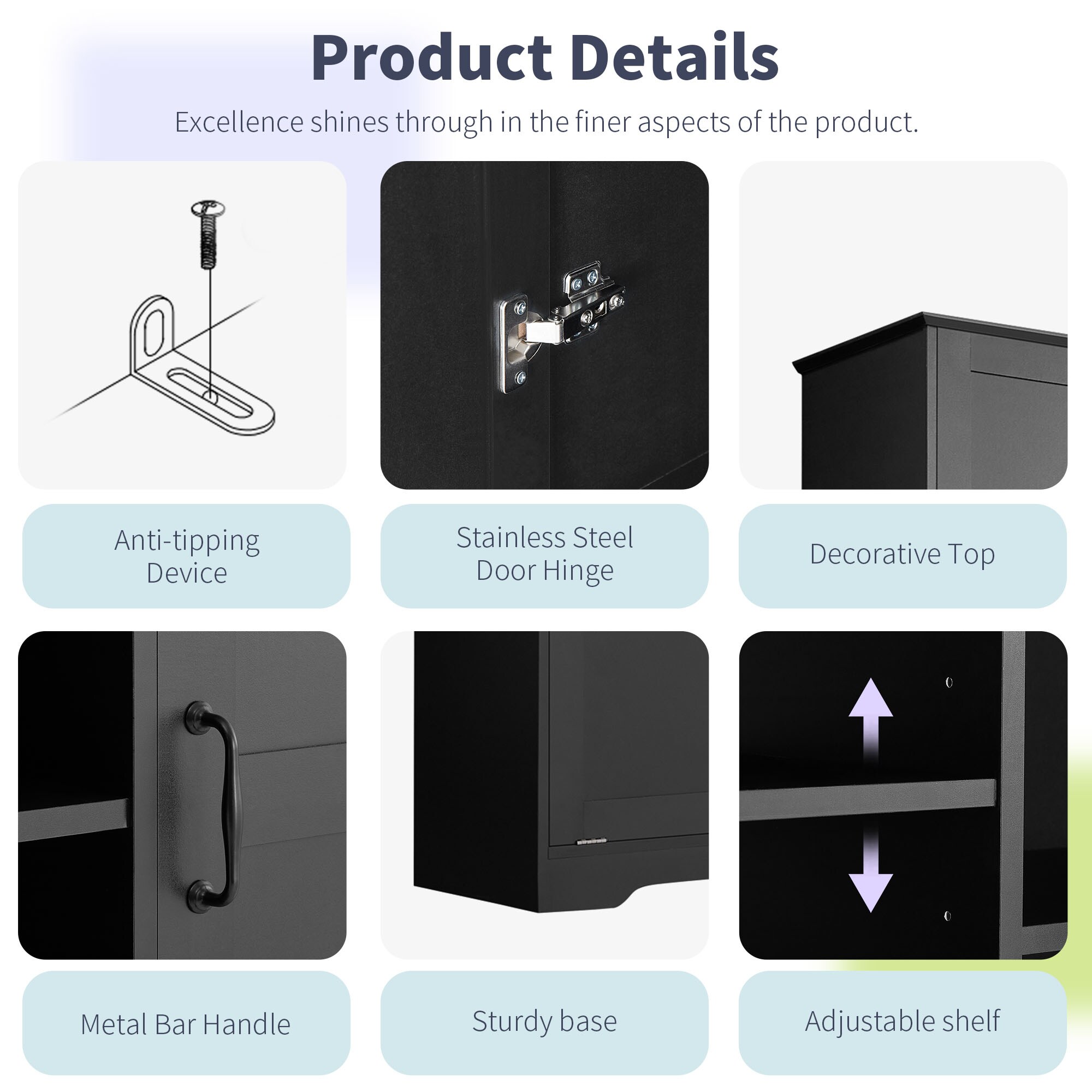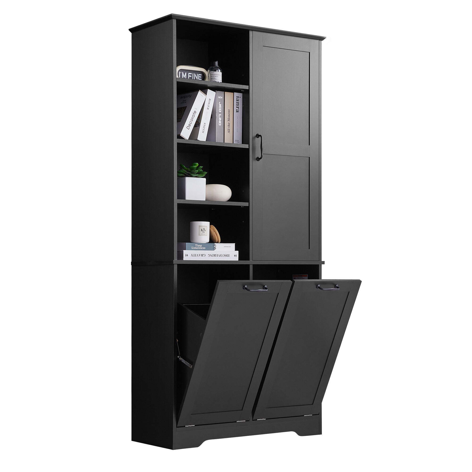 ModernLuxe Bathroom Storage Cabinet with Doors and Drawers TiltOut Laundry Hamper Multiple Storage Space Freestanding Style Open Shelve Adjustable Shelf Black