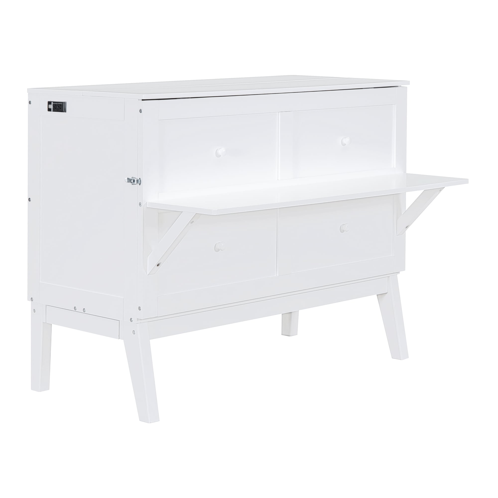ModernLuxe Full Size Murphy Bed with USB Port and removable Shelves on Each SideWhite