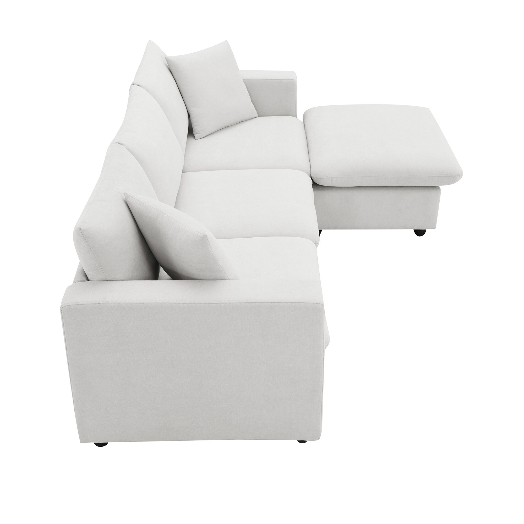 ModernLuxe Modern Sectional Sofa with Throw PillowsCloud Lshaped Couch Set with Wide Seat4 seat Polyester Comfy Fabric Couch Set with Movable Ottoman for Living Room Apartment Office4 Colors