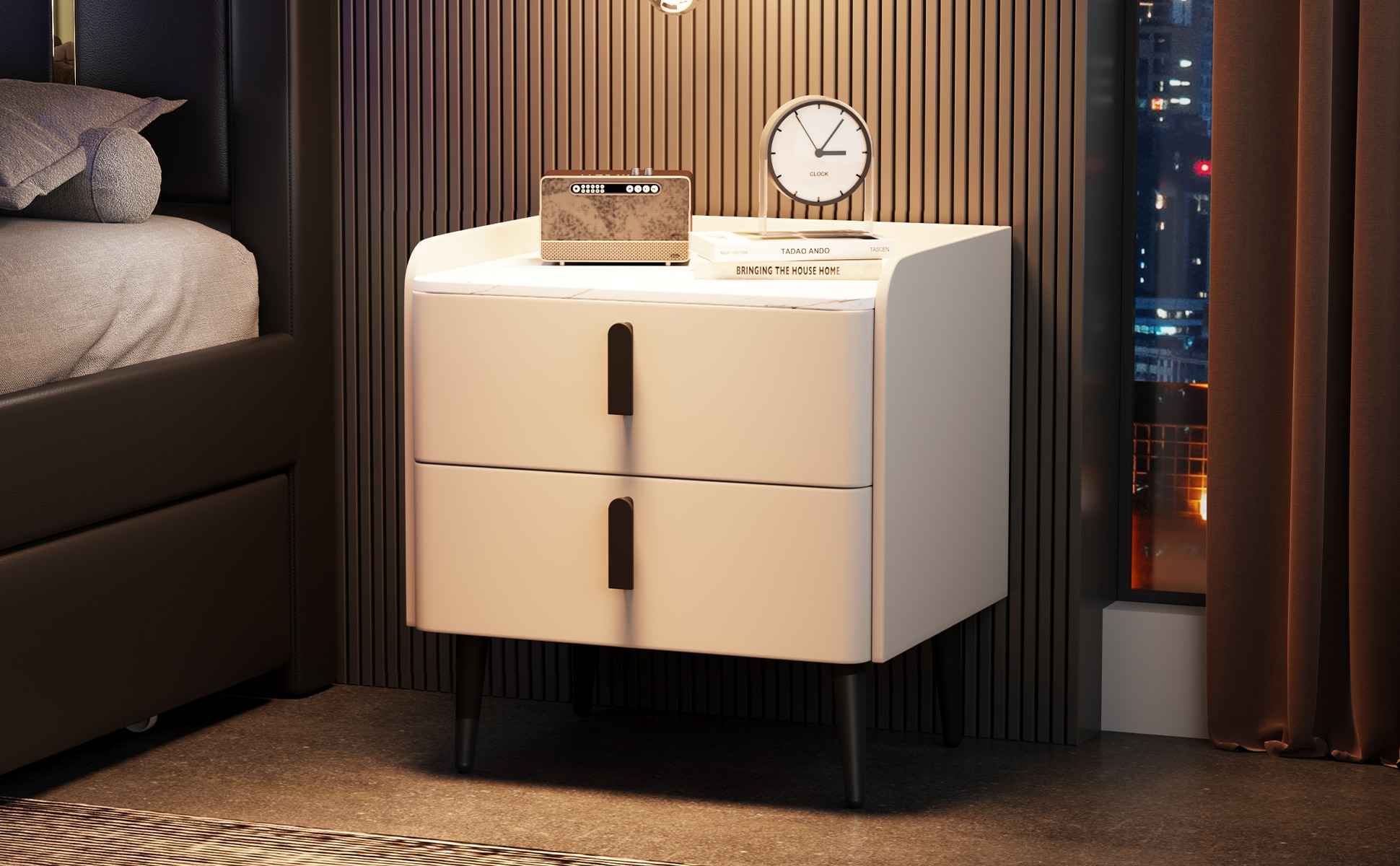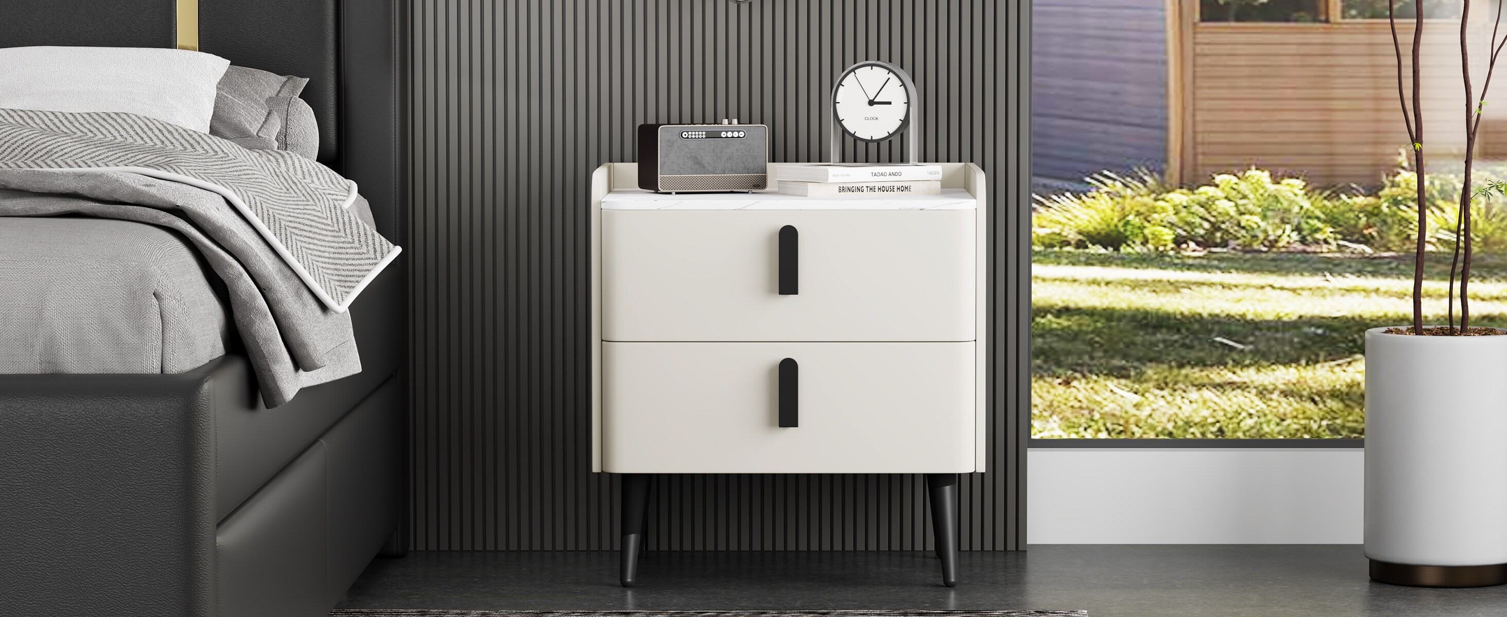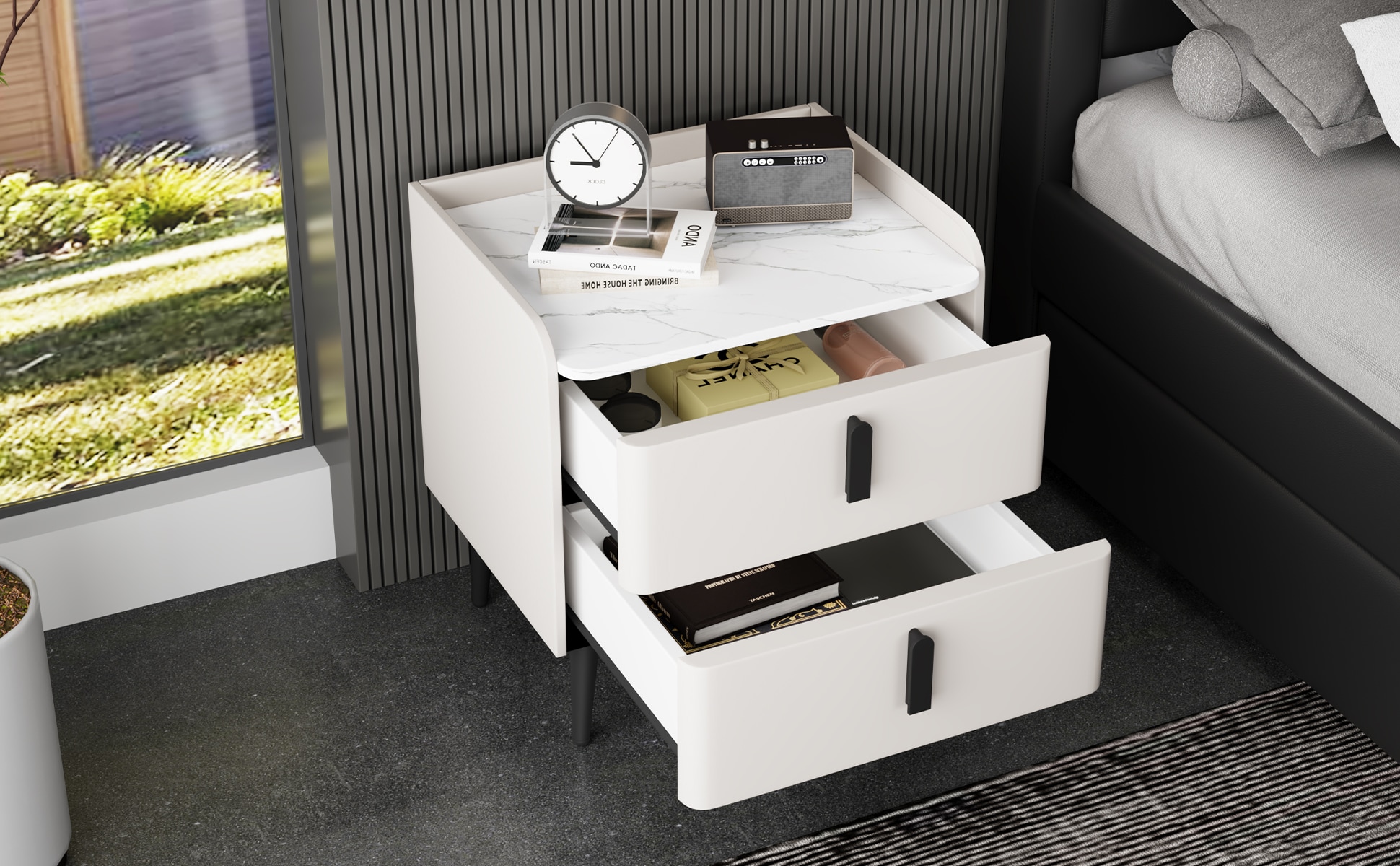 ModernLuxe Nightstand with 2 Drawers Night Stand with MarblePattern Tabletop Modern Beside Table for Bedroom End Table for Living Room White